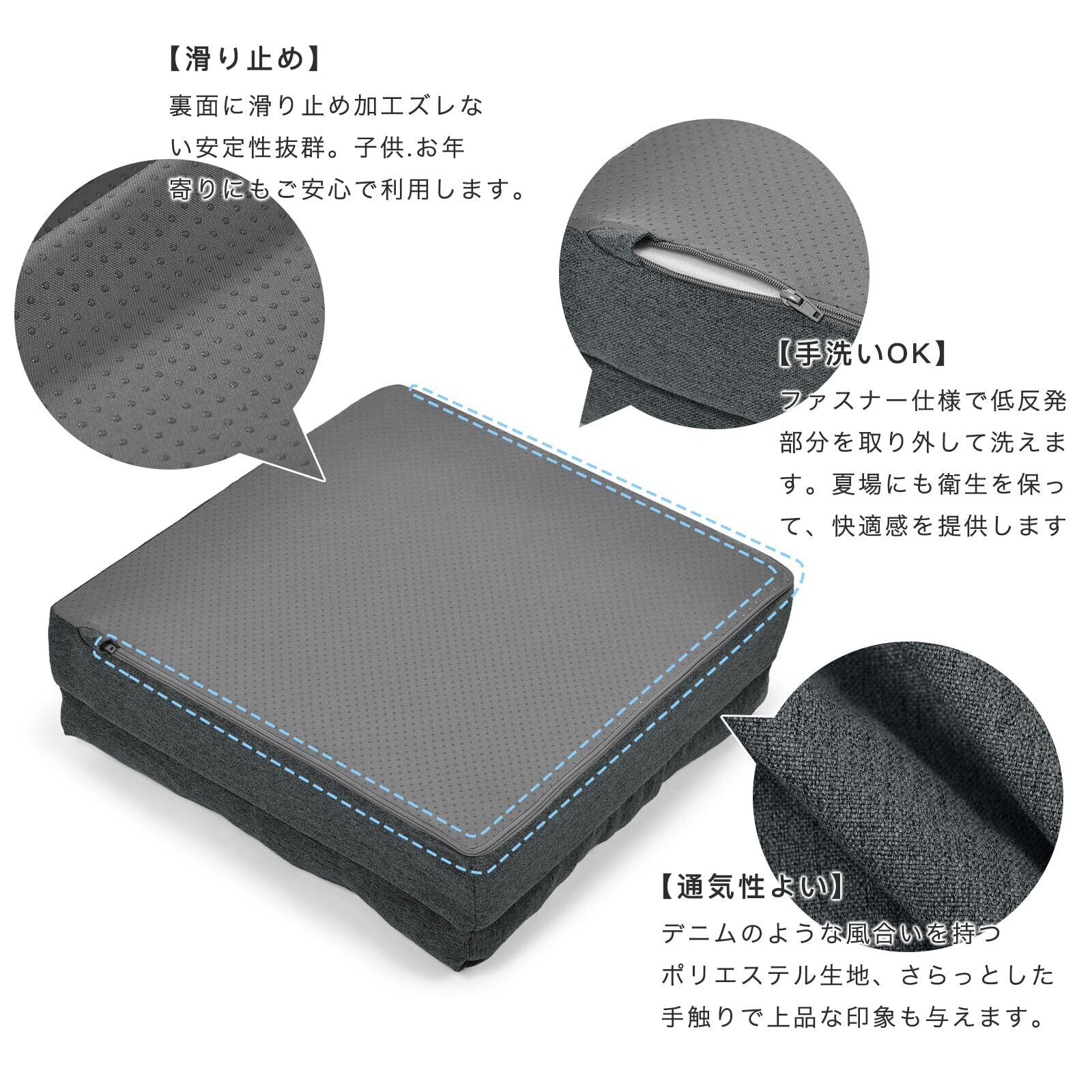 【滑り止め&厚さ調節可能】座布団の裏面にシリカゲル粒子付き滑りにくい安定性抜群です。またファスナー仕様で、下の高反発ウレタンを取り外すことができます。もし椅子の上に設置して使う厚すぎる場合、低反発部分だけも利用できます