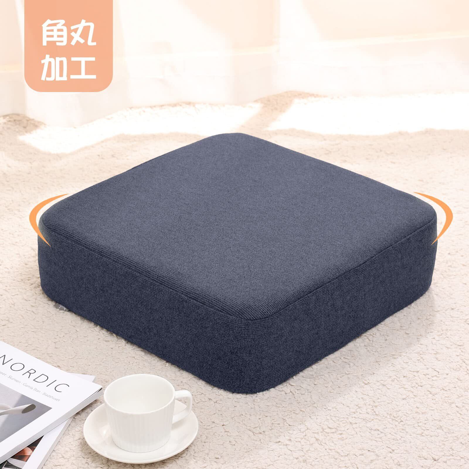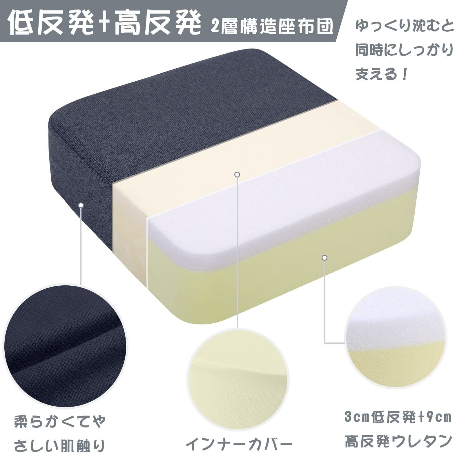 座布団 クッション 低反発+高反発 厚め 2層構造 43×43×12cm ゆっくり沈む フロアクッション 床用 床置き ネイビー