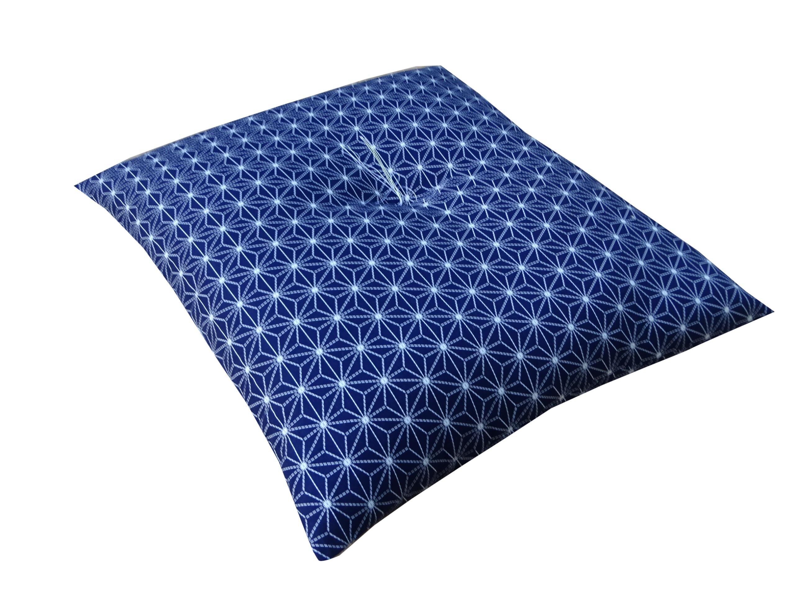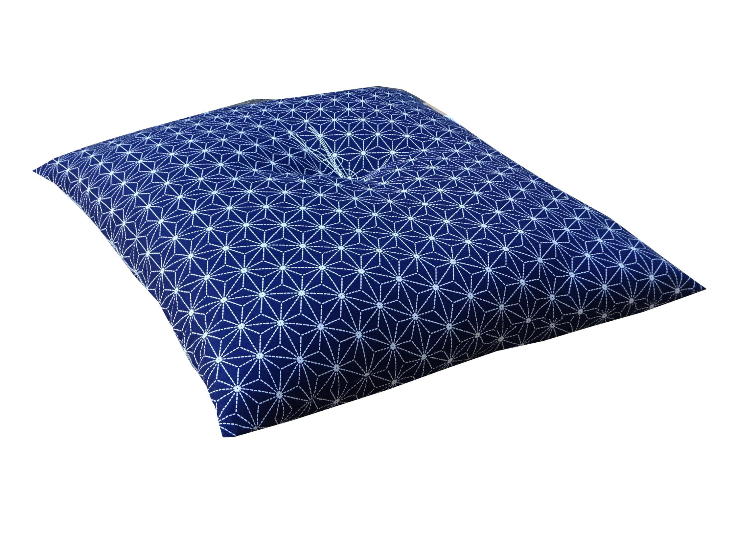 エブリ寝具ファクトリー 讃岐ざぶとん 刺子風 麻の葉柄 座布団 銘仙判 (55×59cm) 1枚 (紺) 日本製 中身 綿100% おしゃれ 座布団 業務用 集会所 公民館