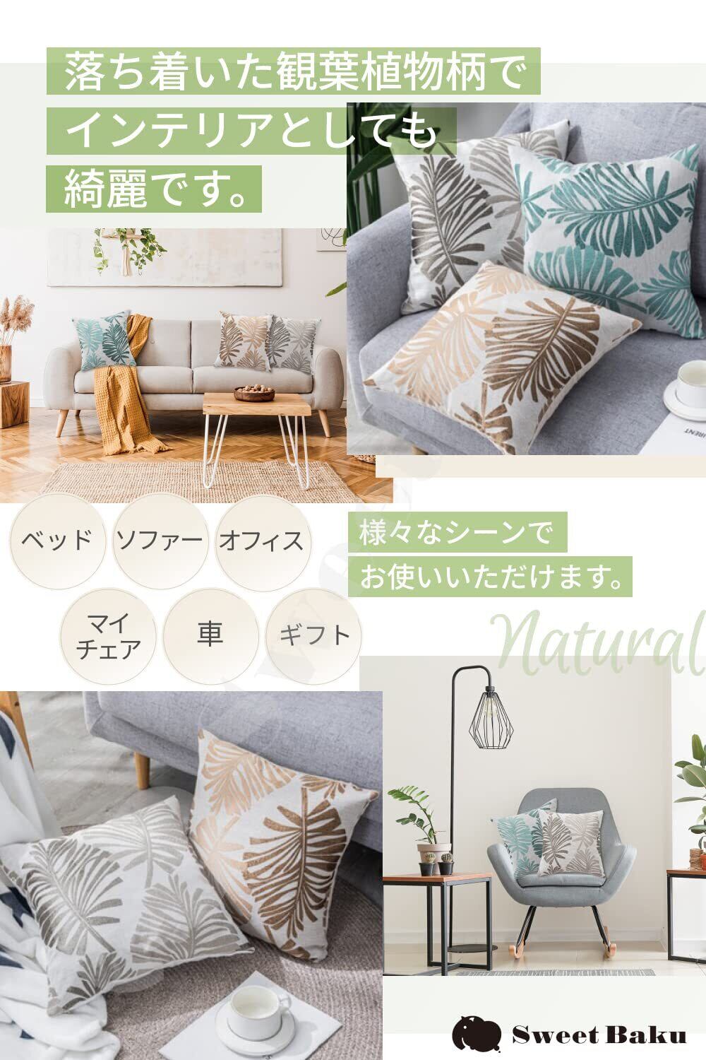 クッションカバー 45×45㎝ おしゃれ 北欧 背当て ナチュラル グリーン柄 ジャガード織 SweetBaku (グリーン)
