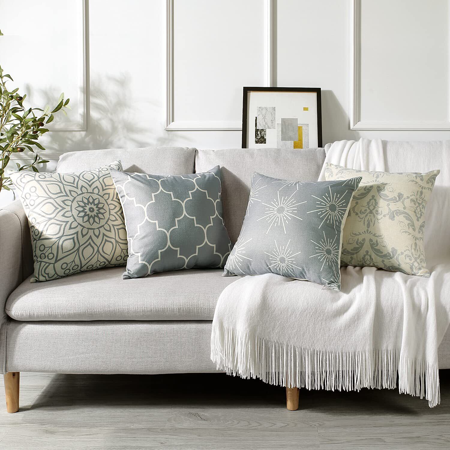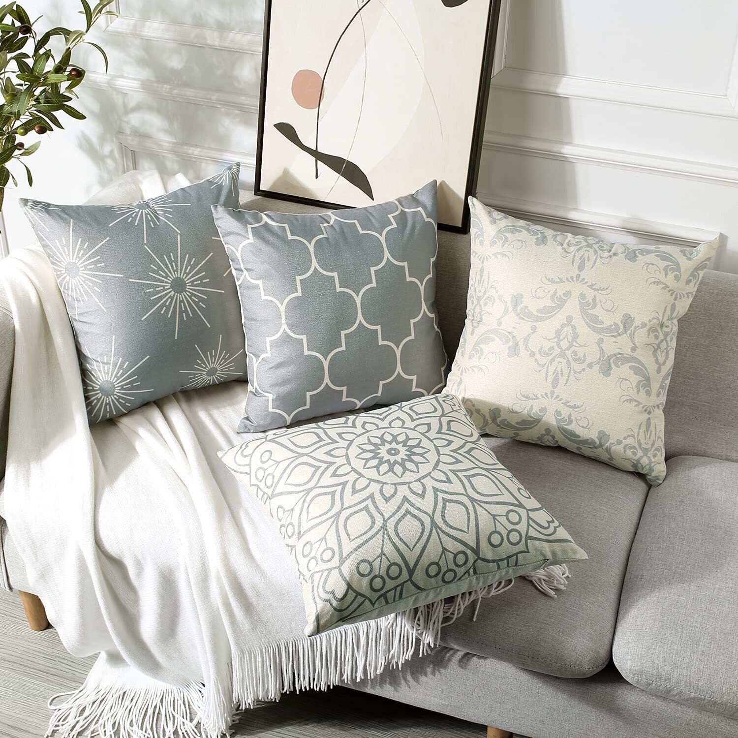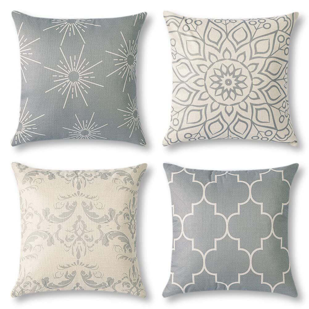 Otostar クッションカバー 45 45 4枚セット 北欧 リネンっぽい 麻 亜麻 おしゃれ 可愛い インテリア アクセント 部屋飾り ソファ 椅子 車内 ベッド ソファー用クッションカバー 抱き枕カバー ソファ背当て 装飾枕カバー 座布団カバー (幾何学模様A)
