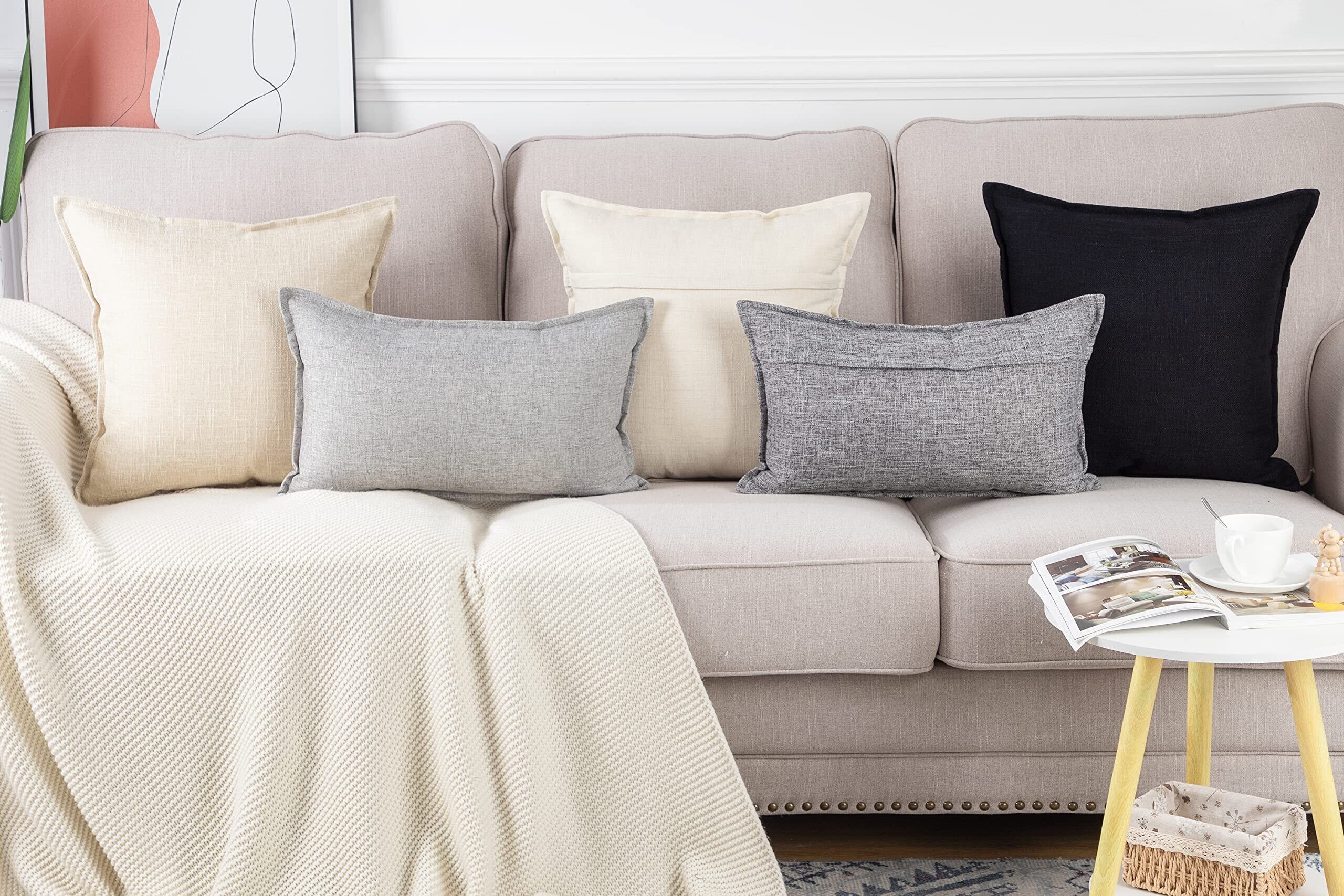 【特価セール】Madizz リネンスローピローカバー2枚セット ソフト装飾クッションカバー ソファ 寝室用 枕シェル 45*45 cm ブラック