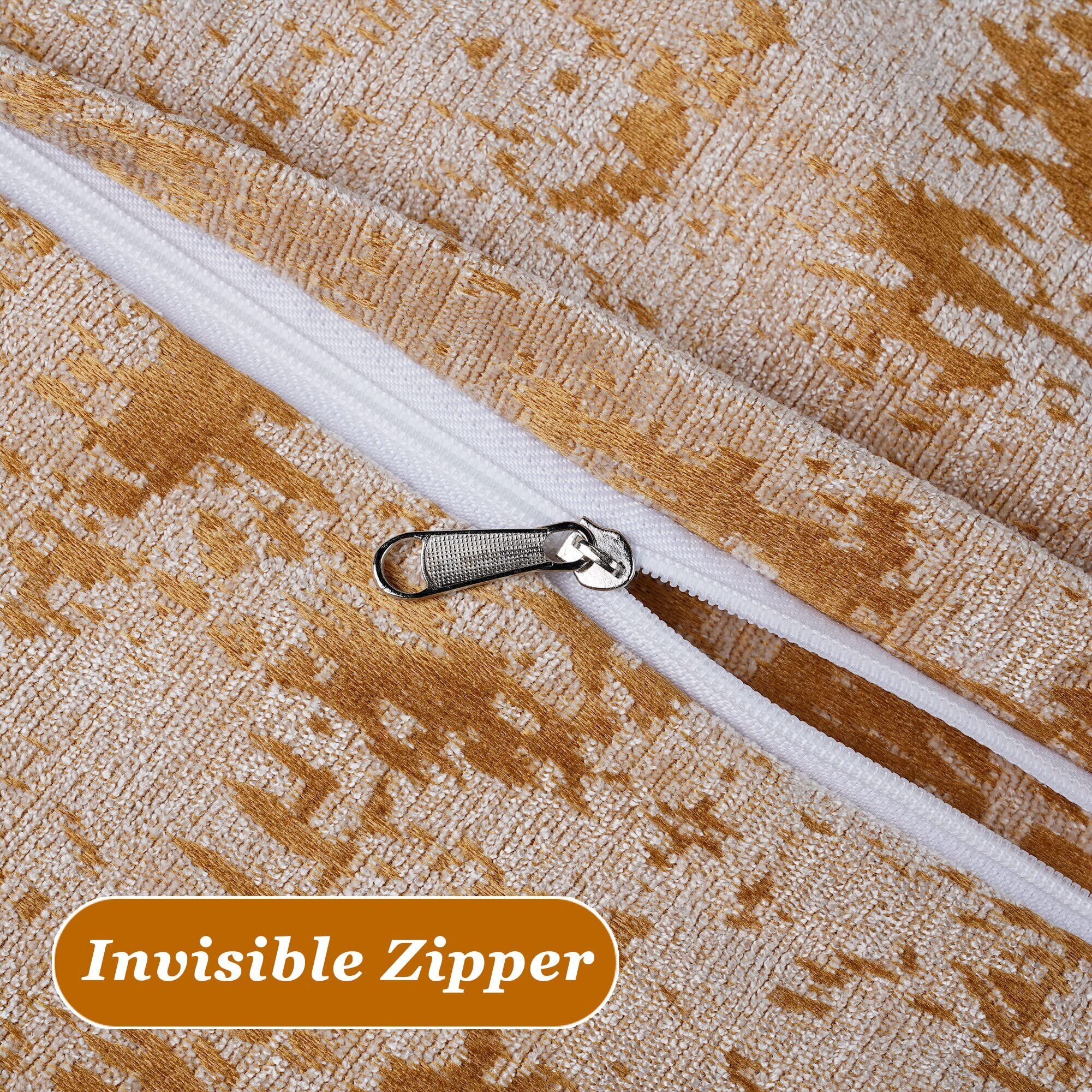 OSVINO クッションカバー インテリア 北欧デザイン 枕カバー ファスナー開閉 丈夫 肌触り良い 花柄/無地 二枚セット 50x50cm ゴールド