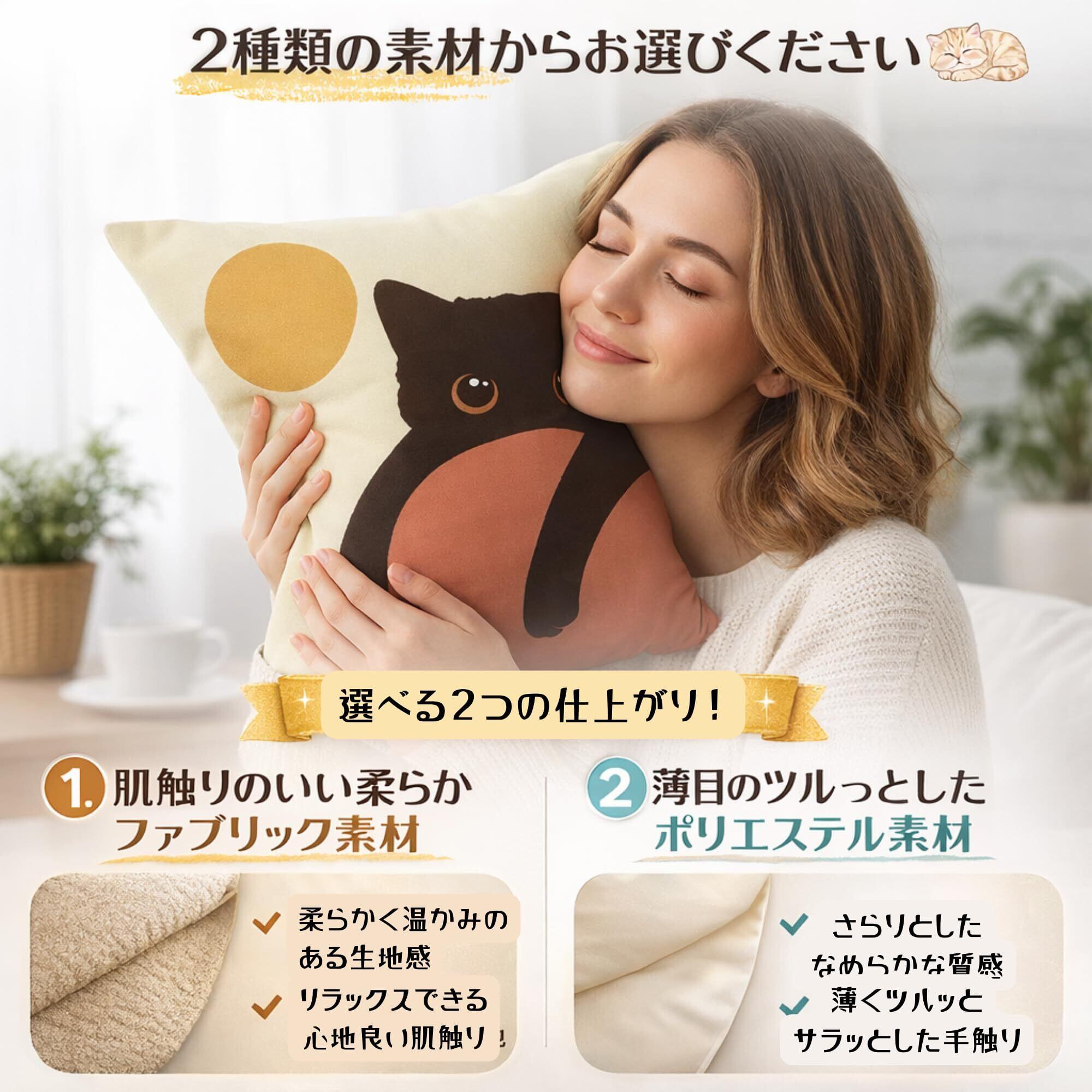 ︎しわができにくく、アイロン不要でそのまま使用できるのも嬉しいポイントです。 猫の可愛らしいデザインが、お部屋をより魅力的に