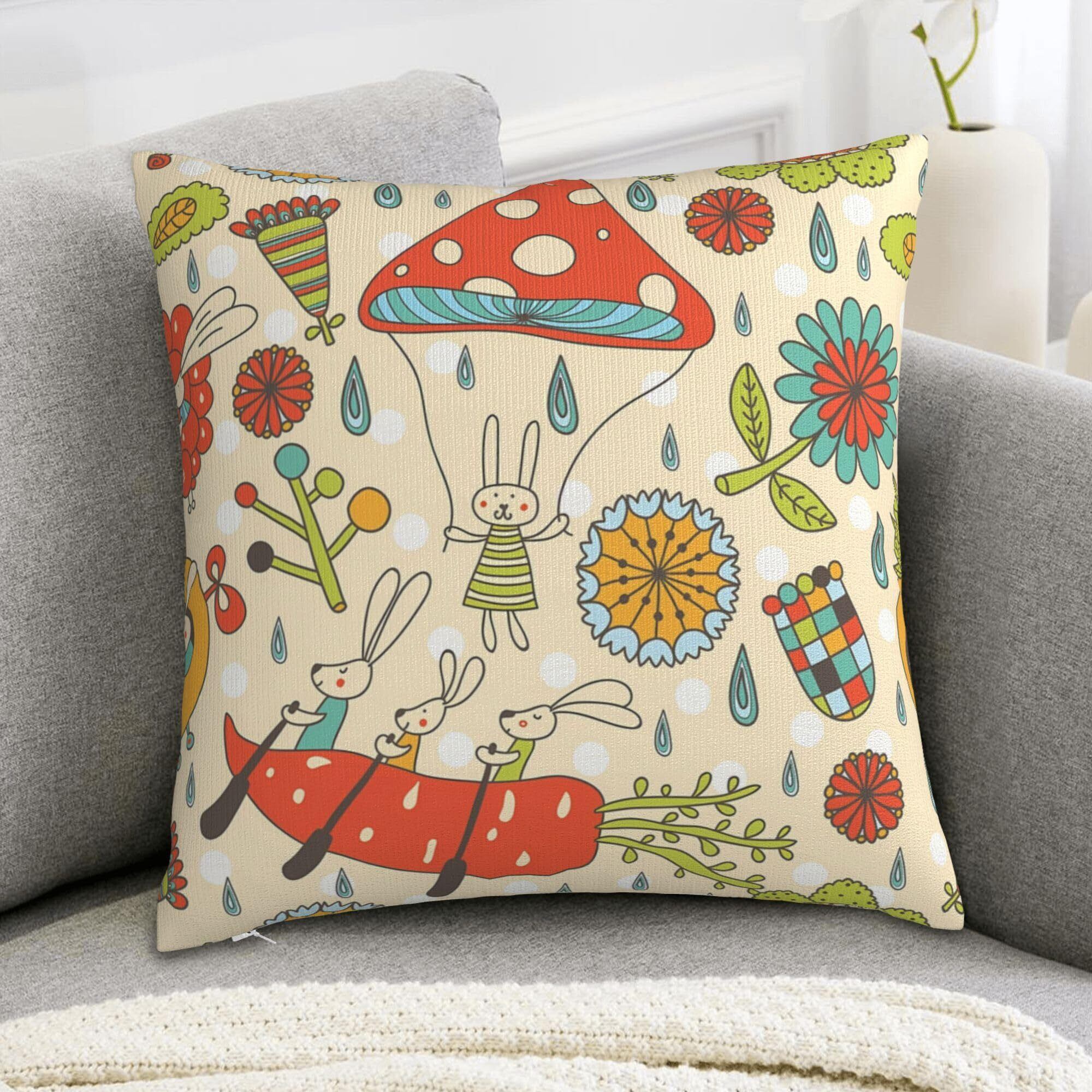 クッションカバー 45×45cm 抱き枕カバー ポケット付き おしゃれ 柔らかい 装飾枕カバー 座布団カバー 四季兼用 家庭用 オフィス 背当て 椅子 車内 ベッド (マッシュルーム9)