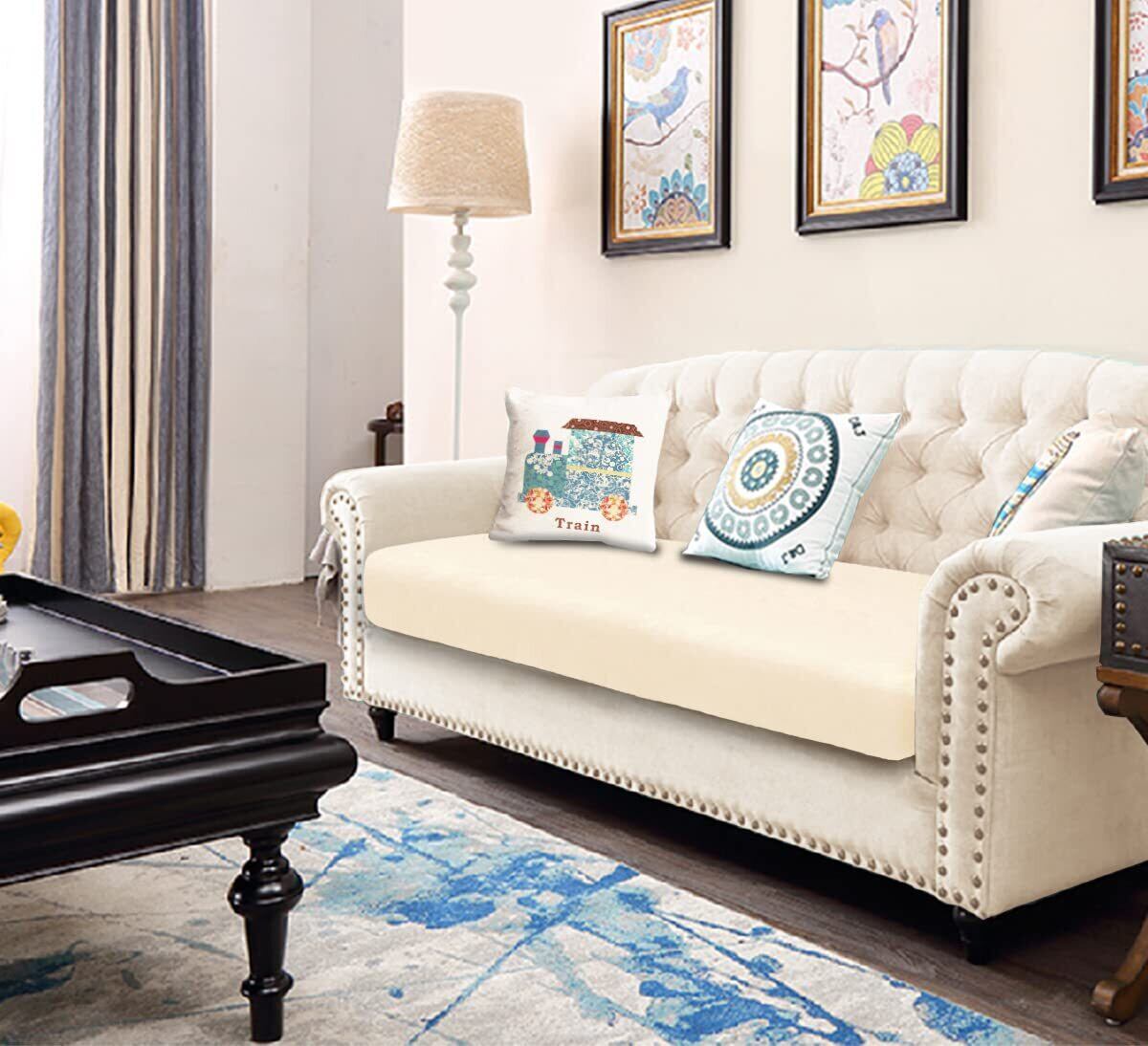 【在庫処分】TIANSHU ソファー座面カバー 2人掛け ソファー クッション カバー フランネル 無地 縦横弾力 ストレッチ フィットタイプ 滑り止め 柔らかい 伸縮素材伸び良く 四季適用 超便利(2人掛け,ベージュ)