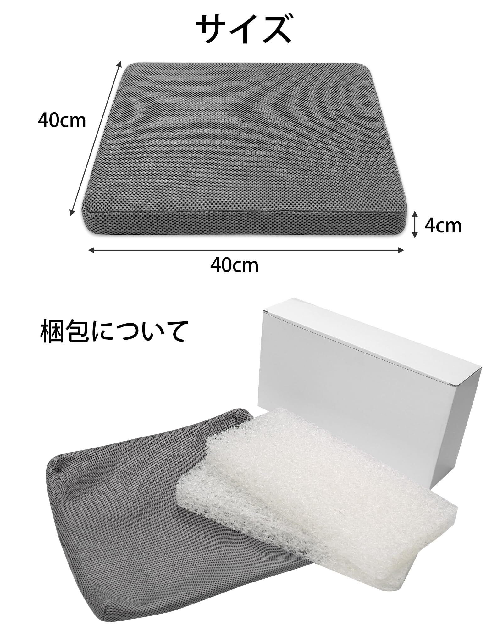 【新春セール】クッション 蒸れない 座布団 通気性 高反発 椅子 シート夏用 ひも付き メッシュ 疲れない お尻が痛くならない 体圧分散 座り心地いい 涼しい 車用 自宅用 (40*40*4cm・グレー)
