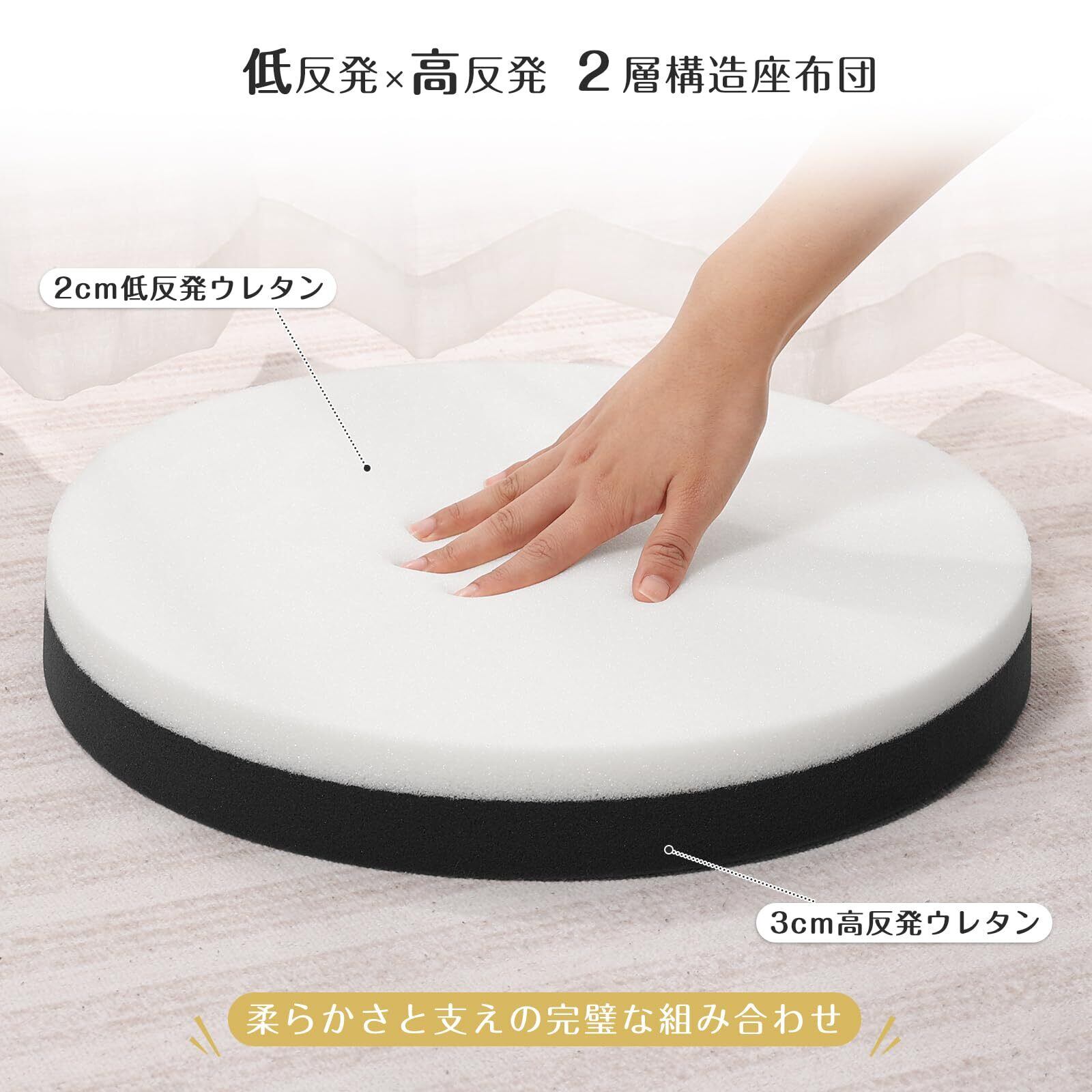 【低反発座布団クッション、2枚セットはお得です】高品質な低反発クッションがゆっくり沈む込む、適度な柔らかさ、お長く座っても座り心地よく。座布団は厚み5cm、クッション性良い、座る時に底付き感なし、木製のチェアやフローリングに座ると、気持ちいいです。
