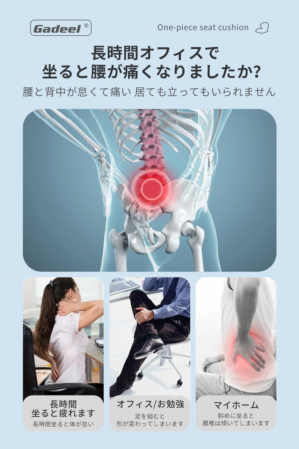 【一体化サポート・快適体験】該当椅子クッションは腰からお尻まで体に一体化的なサポートをあげます。体の曲線は快適な保護を設計します長時間に座っていると、腰とお尻への負担がひどいです、このクッションは全体的に体を支え、腰や背中への負担を軽減できるので、腰痛・お尻痛などの痛みを緩和する効果があります。(※注:本製品は正しい座り姿勢を補助するのみで、座位の矯正はできません)。