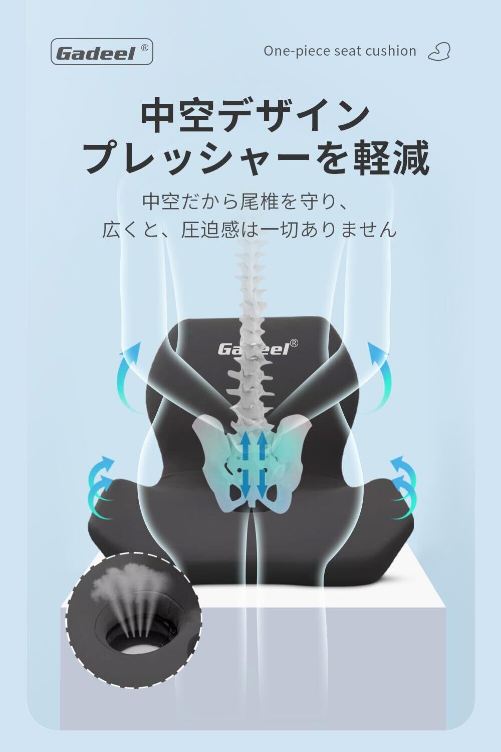 Gadeel 座布団 低反発 腰痛クッション 一体型 ランバーサポート 骨盤サポート 姿勢改善 椅子クッション 背もたれ 腰痛対策 中空設計 蒸れない 通気性 カバー洗える 椅子 自宅 オフィス プレゼント用(ブラック)