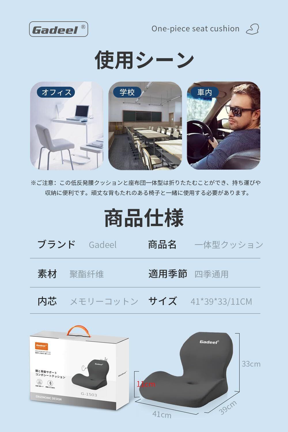 【通気性が優れる&洗濯可能】この低反発腰クッションと座布団一体型を長時間に使用してもお尻が蒸し暑くないです。ポリエステル繊維は汗吸収し、抜群な通気性があり、柔らかくてお肌にも優しくて、四季が通用します。低反発なメモリーコットンサポート性が強く、長時間を座っても決して変形しません。簡単に外して洗濯できる。