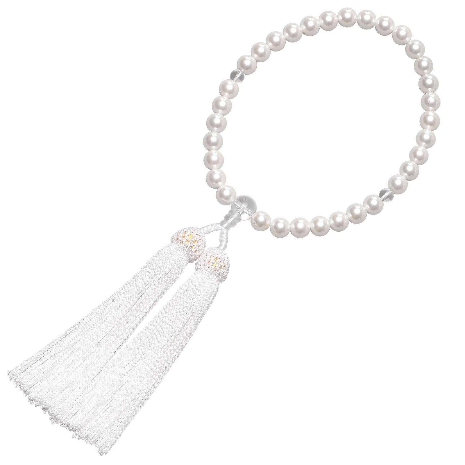 【新着商品】数珠 女性用 本水晶 星月菩提樹 念珠 葬式 葬儀 お通夜 略式 じゅず 数珠袋付き すべての宗派で使える (貝パール/白)
