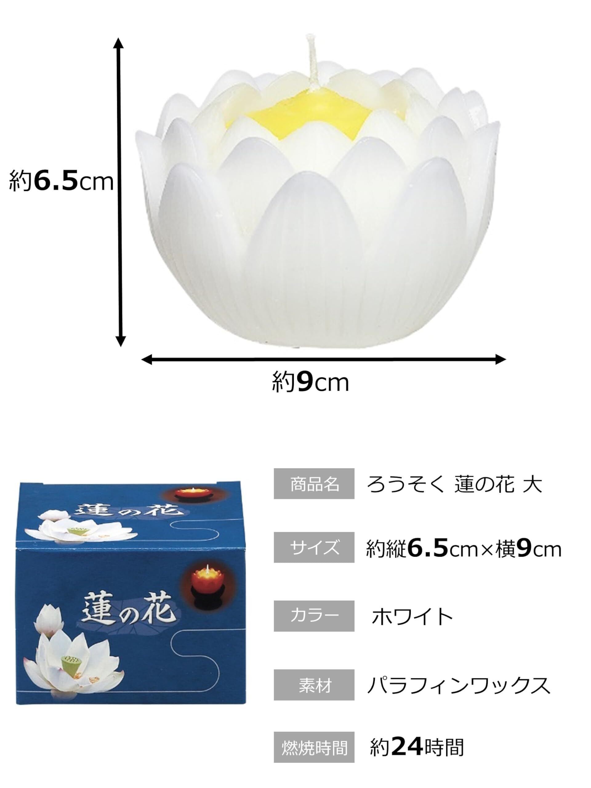 マルエス ろうそく 蓮の花 大 24時間 長時間 ハス ホワイト 箱入り 約9×9×6.5cm