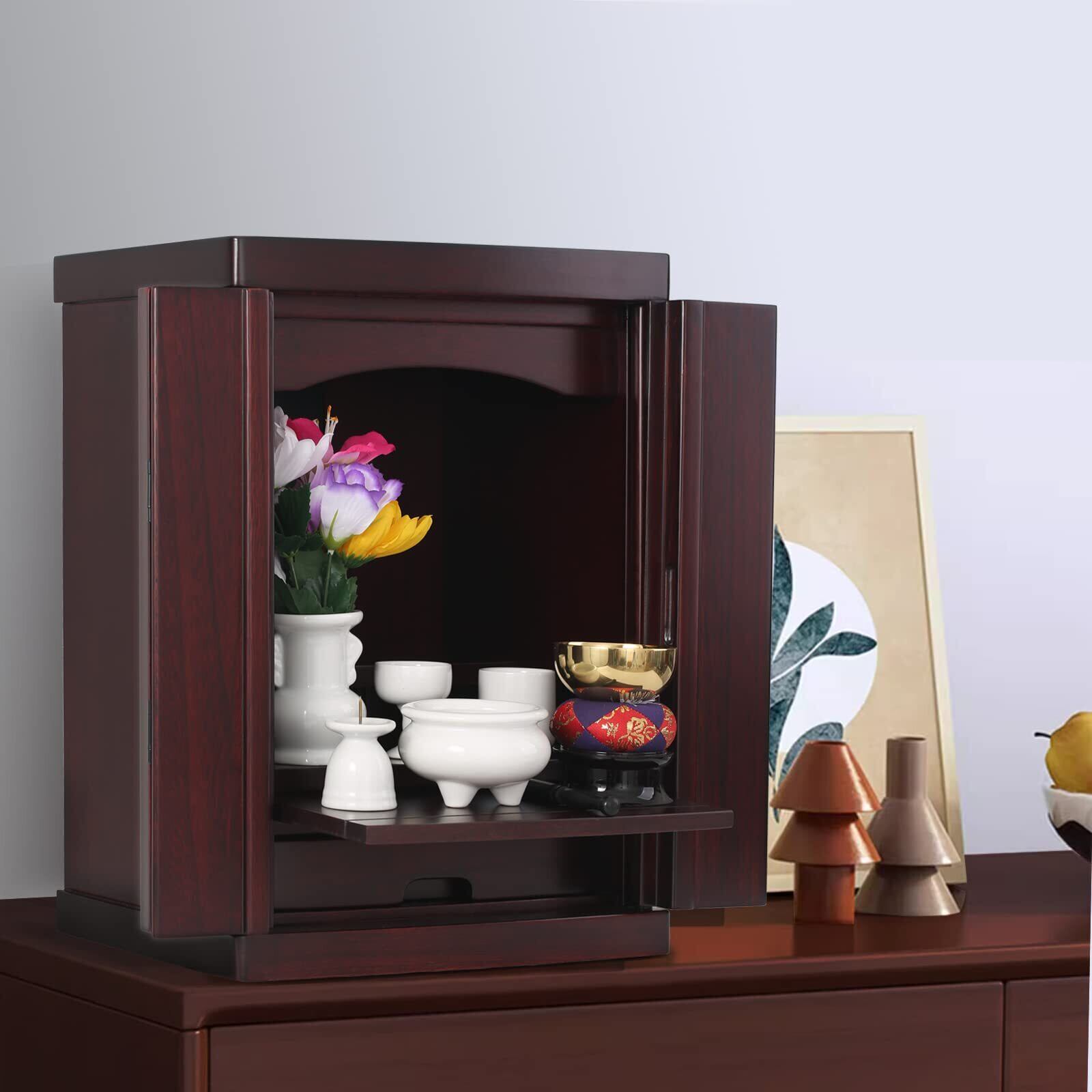 【收纳しやすい】箱内には引き出しと前後に動かせる仏具用板があります。おすすめの位牌サイズは:幅10cm、奥8cm、高さ20cm 【仏壇だけを販売しております、仏具は含まれてありません】