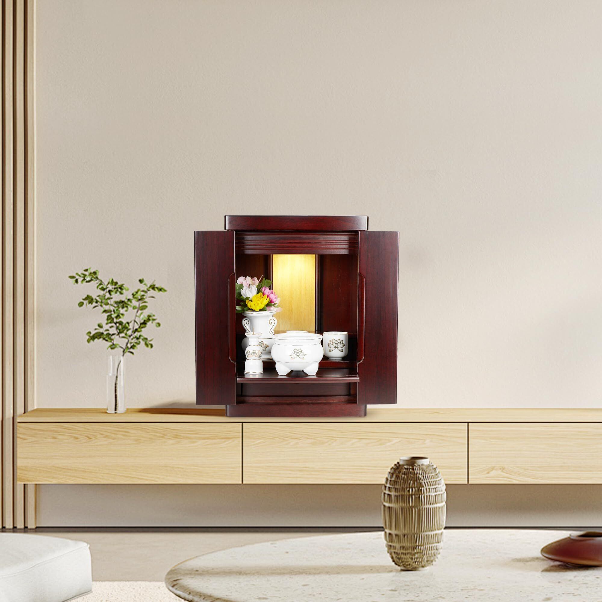ミニ仏壇 NEW15号 (LED照明付) 幅32cm 奥行き25cm 高さ45cm和室/洋室/コンパクト リビング おしゃれに最適 (紫檀色)