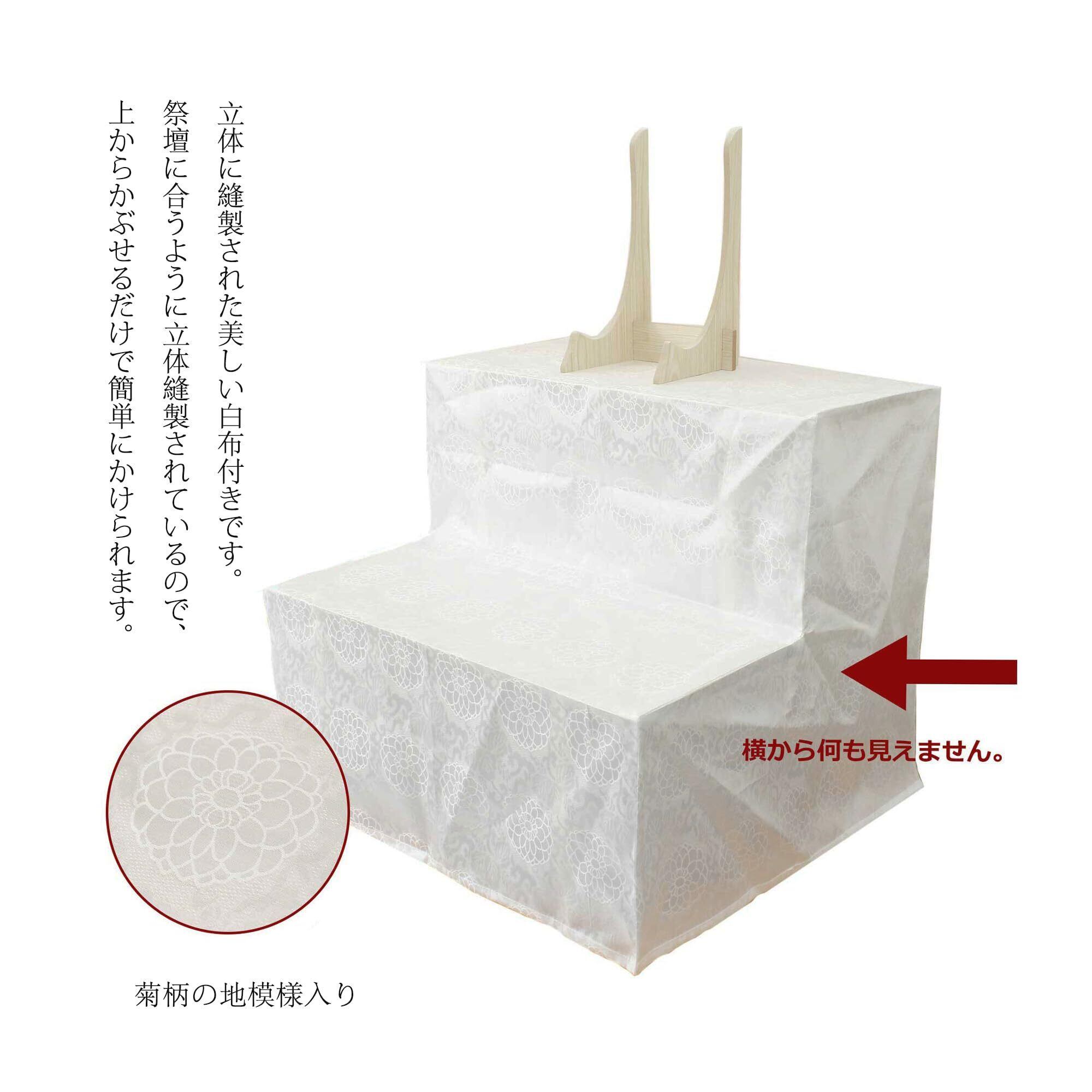 二段祭壇用 白布 カバー 幅60cm 木製祭壇 後飾り 白布覆付 カバー付き カバー 写真立て付き お盆 精霊棚 (二段(巾60cm))