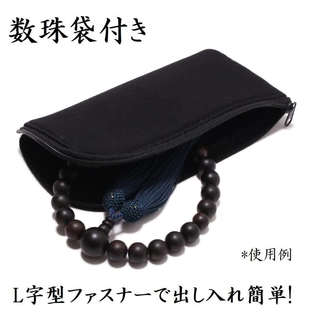 【新春セール】念珠堂 < 日本製 数珠 > 本黒檀 22玉 <数珠袋付> 男性用 国産 手作り 念珠 (房色 鉄紺) 全ての宗派でお使い頂けます