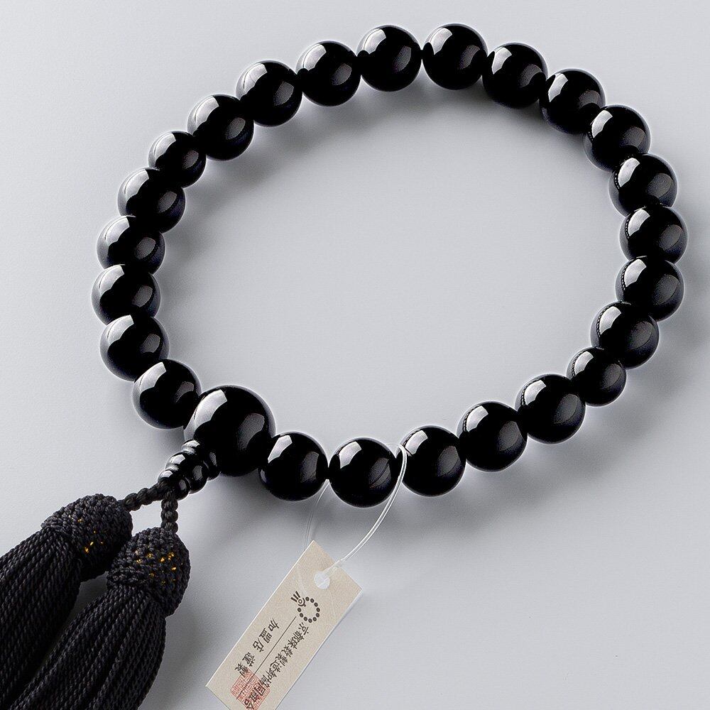 【新春セール】京念珠 数珠 男性用 黒オニキス 22玉 正絹頭付房 数珠袋付き すべての宗派で使える男物念珠 証明書付