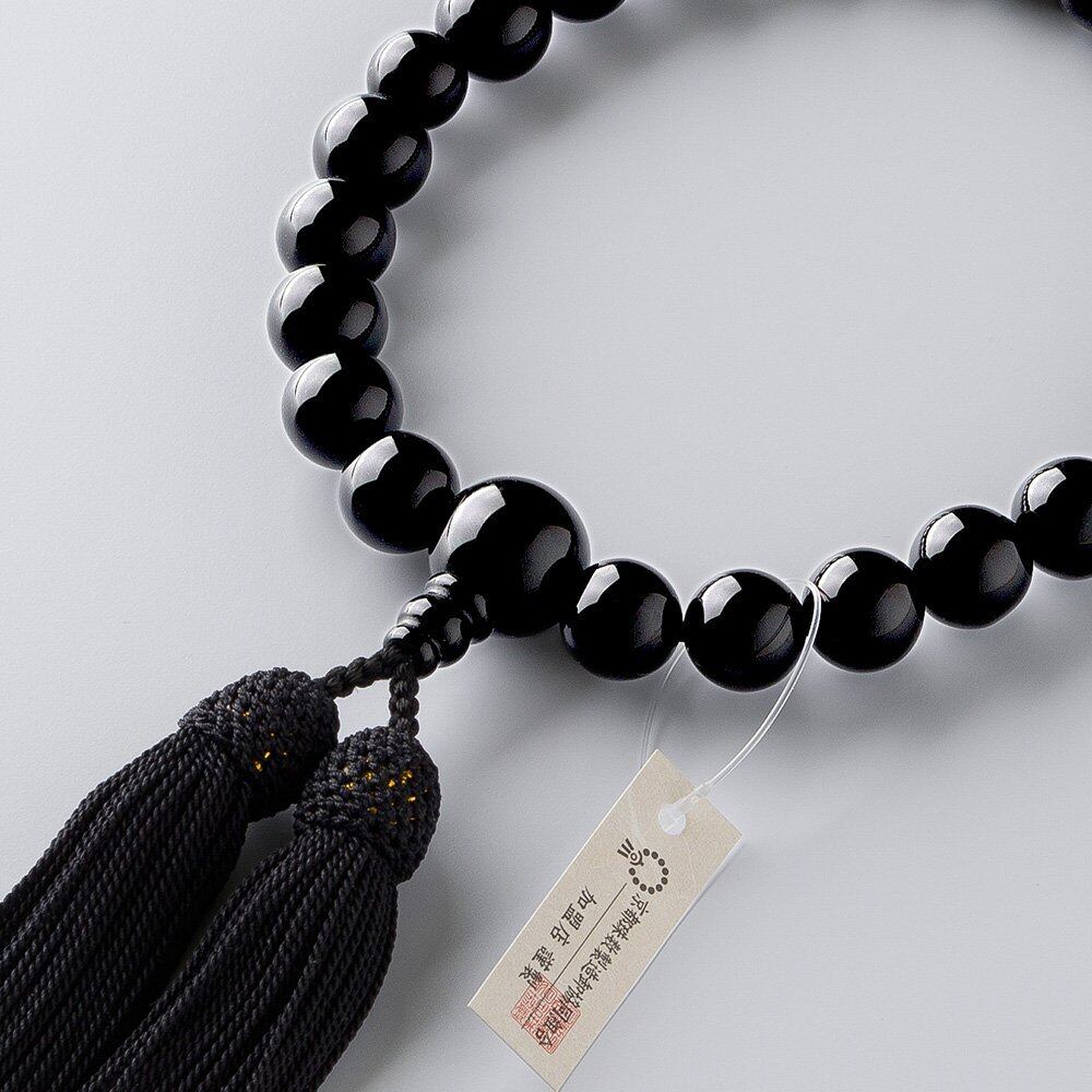 京念珠 数珠 男性用 黒オニキス 22玉 正絹頭付房 数珠袋付き すべての宗派で使える男物念珠 証明書付