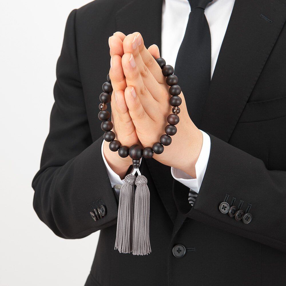 仏壇屋 滝田商店 数珠 男性用 縞黒檀 (艶消) 2天 茶水晶 22玉 正絹頭付房(ねず茶色) すべての宗派でお使いいただける 男性用 念珠 京都製