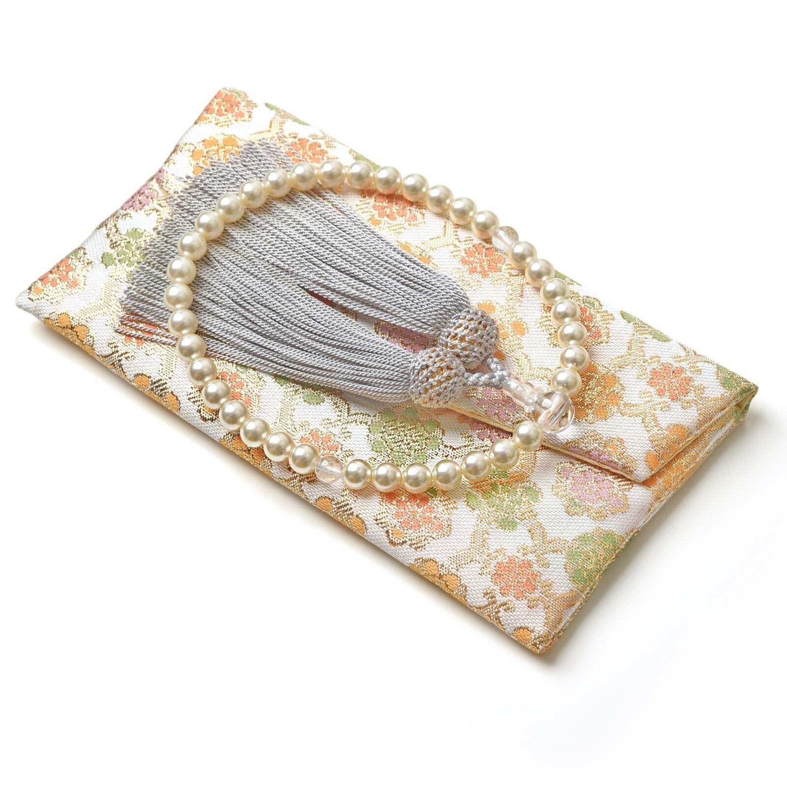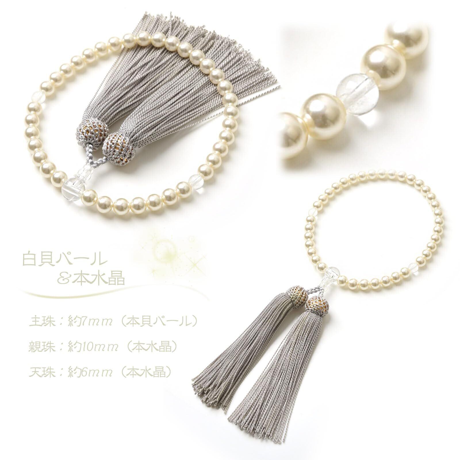 数珠 女性用 3種類 貝パール 本水晶 数珠入れ 特典付 7mm パール 頭房 念珠