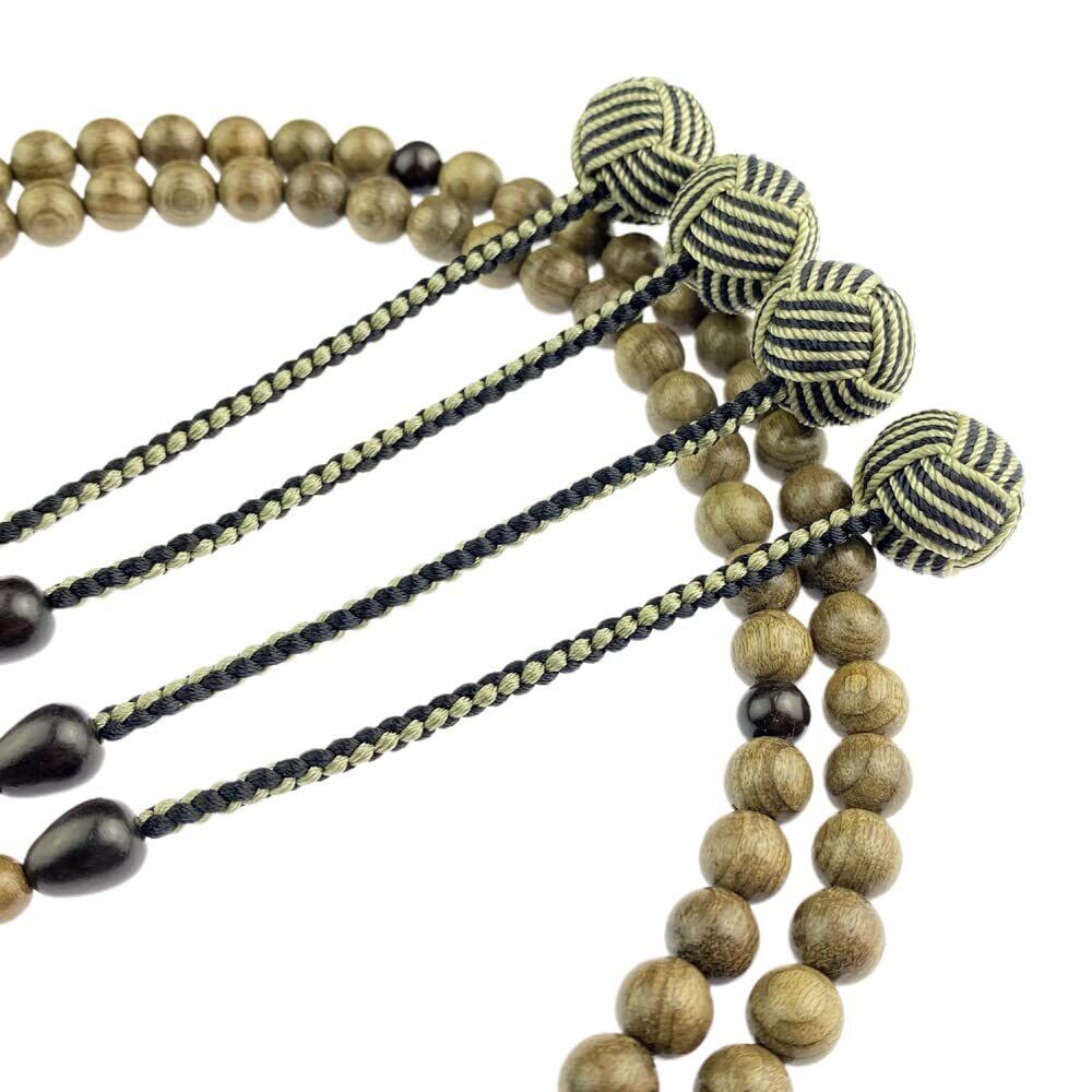 商品名称:真言宗 本式数珠 男性用 神代金絲楠木 108玉 振分尺三 黒檀仕立 2色小田巻 数珠袋付き 親玉:黒檀(約13ミリ) 主玉:神代金絲楠木(約8ミリ) 天玉:黒檀(約6ミリ) 房色:若草色/黒2色小田巻