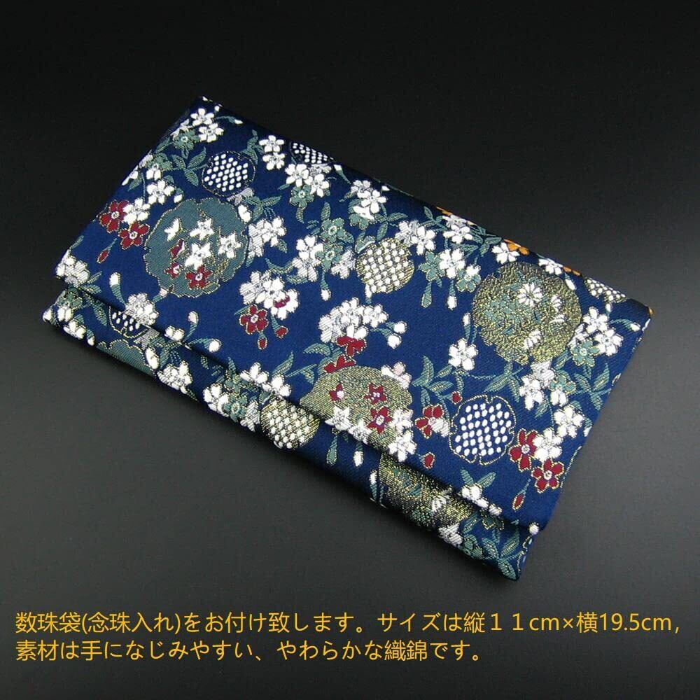 包装:数珠袋(念珠入れ)をお付け致します。サイズは縦11cm×横19.5cm,素材は手になじみやすい、やわらかな織錦です。留め具はマジックテープで、開閉が簡単です。