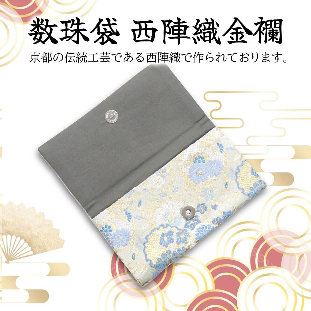 【数量限定】数珠袋 和柄 金襴 西陣織 念珠袋 男性用 女性用 葬儀 葬式 お通夜 数珠ケース マグネット マグネットボタン (雪輪 白)