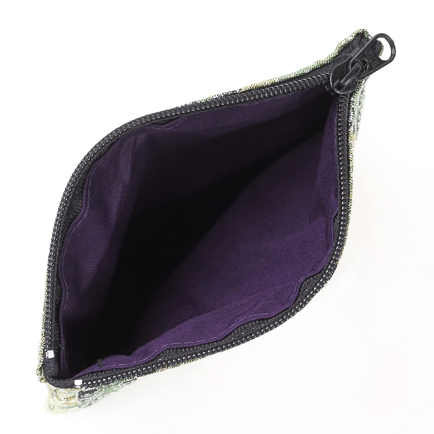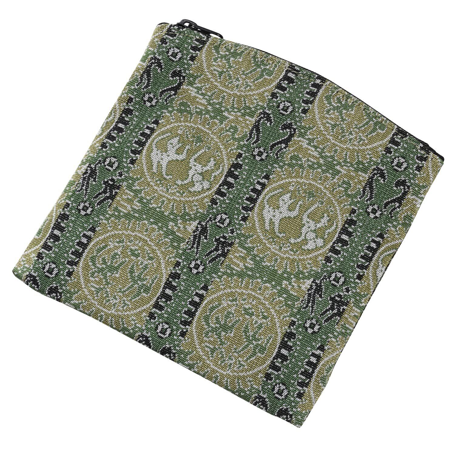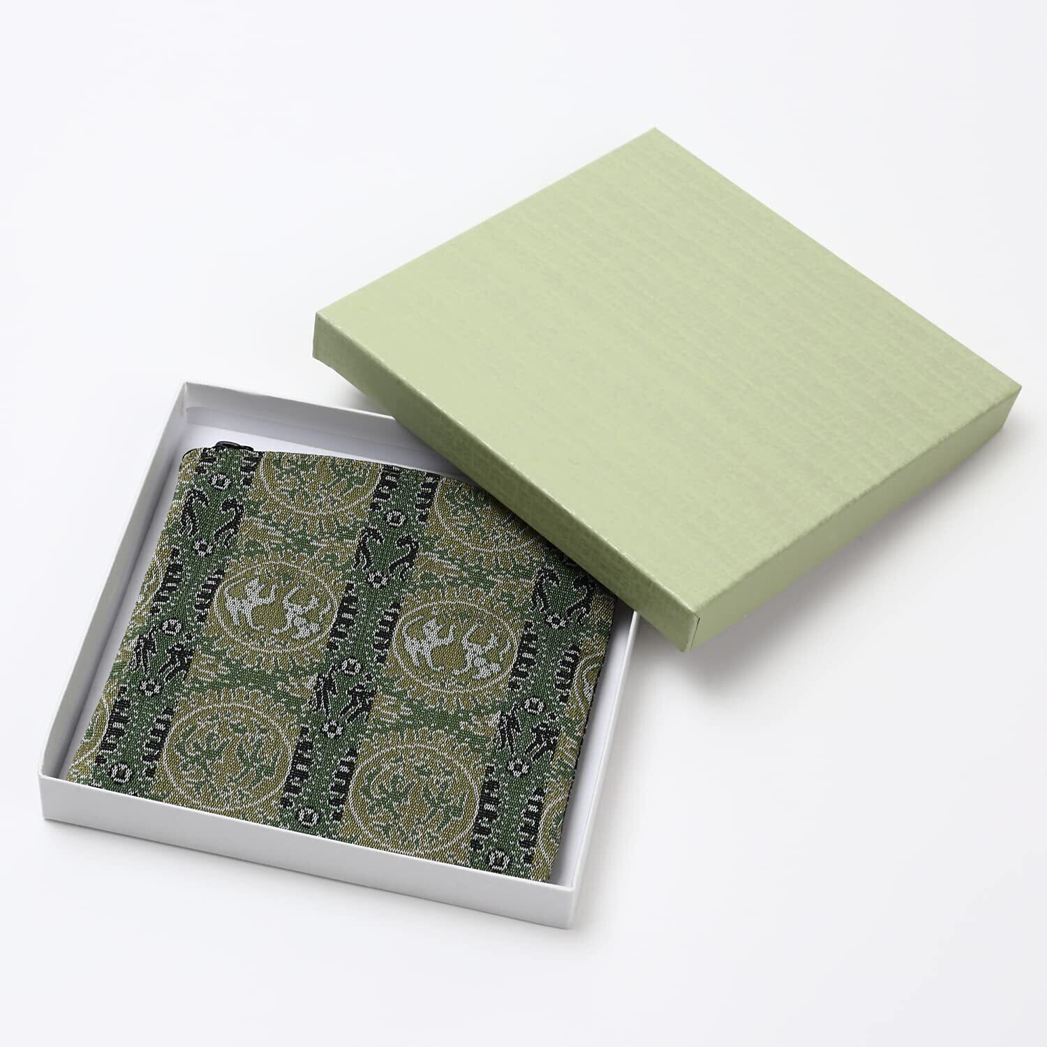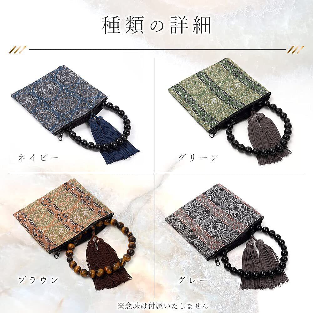 正倉院 男性用 数珠袋 念珠入れ チャック付 ポーチ ケース 13×13cm 外箱付 日本製/緑 グリーン