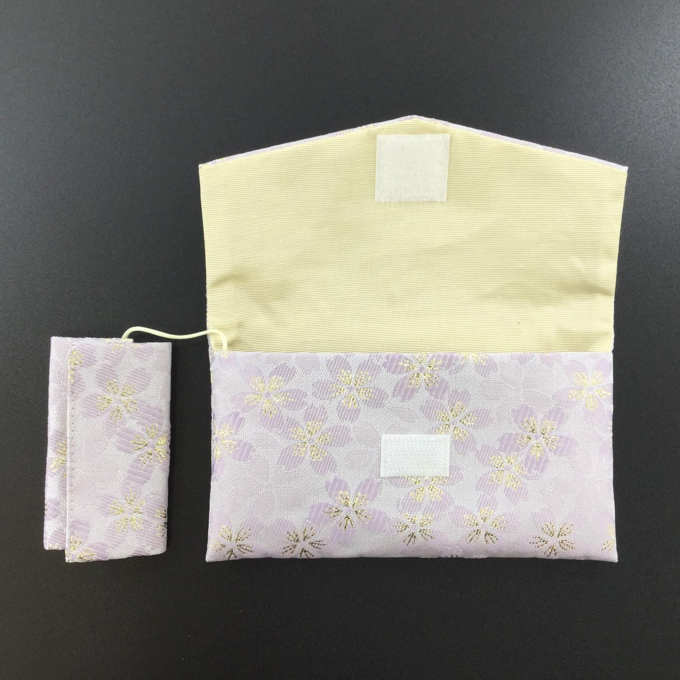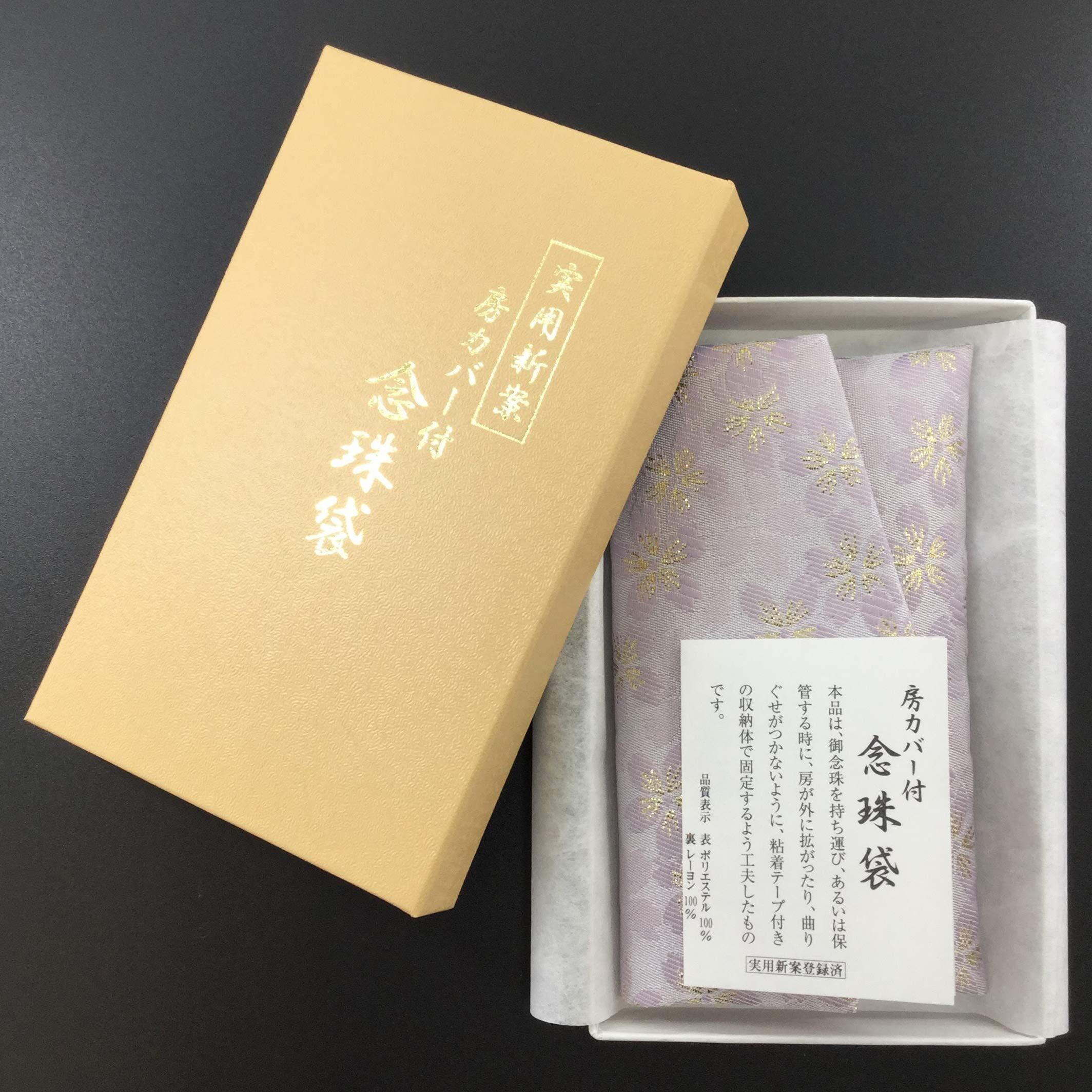 念珠入れ 房カバー付き 念珠袋 金襴 日本製 桜パープル 1643-2