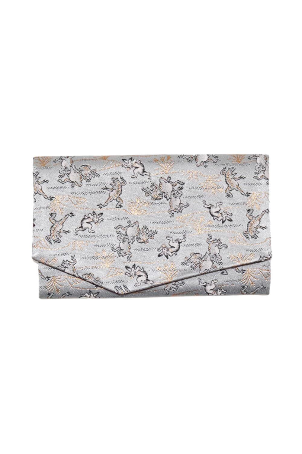 金襴 西陣織 ふくさ 袱紗 慶事用 結婚式 台紙入り (鳥獣戯画 グレー)