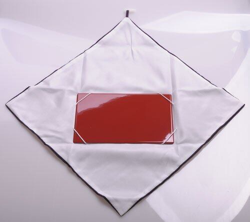 ふくさ一辺約35cmの正方形通常慶弔の際はふくさ(袱紗)で包みますが、より丁寧にする場合は漆盆に乗せます。これはふくさと盆を合体させたものです。