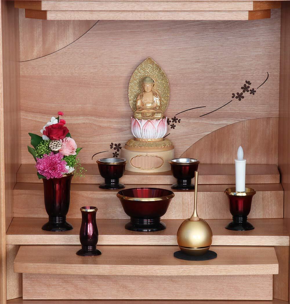 銀河 仏具6点 ワインレッド3.0寸とチェリンのセットです。