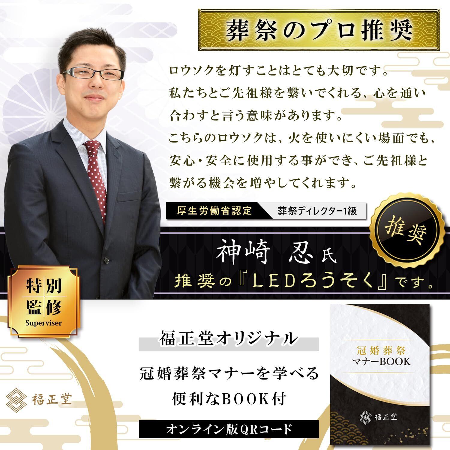 【長く使えて経済的】単4×3本で電池寿命も約150時間、1日15分の使用で20か月。※電池は別売りです。 【葬祭のプロが推奨】厚生労働省認定 葬祭ディレクター1級 神崎 忍氏 推奨の仏壇用のろうそくです。
