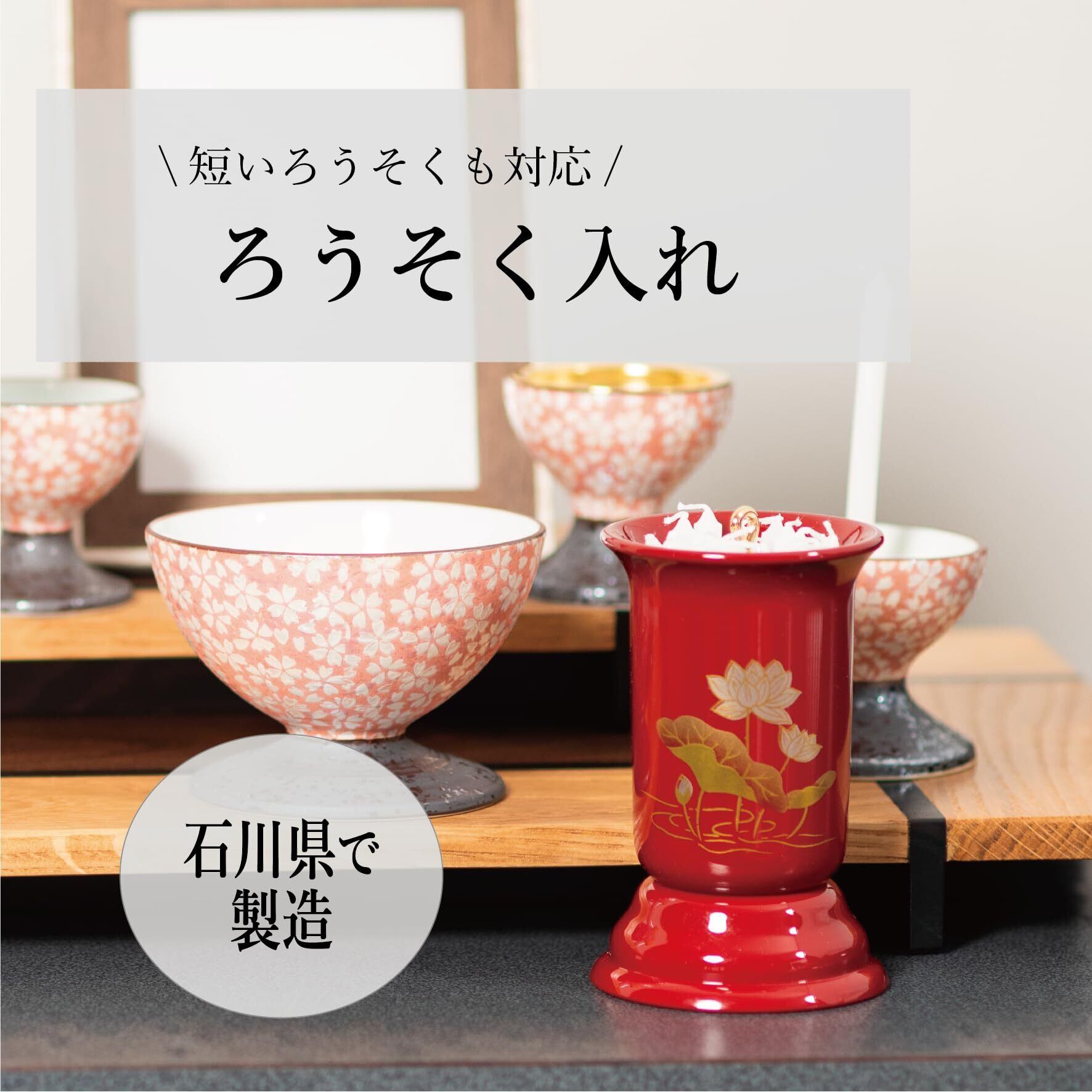 サンメニー 本格 仏前 ろうそく入れ 短い ロウソク 対応 山中漆器 日本製 仏壇 用 蝋燭 立て ろうそく たて 仏具 お仏壇 小物 タメ 蓮 毎日の お供え お清め に 手元供養 短寸 直径6.4×10.5cm