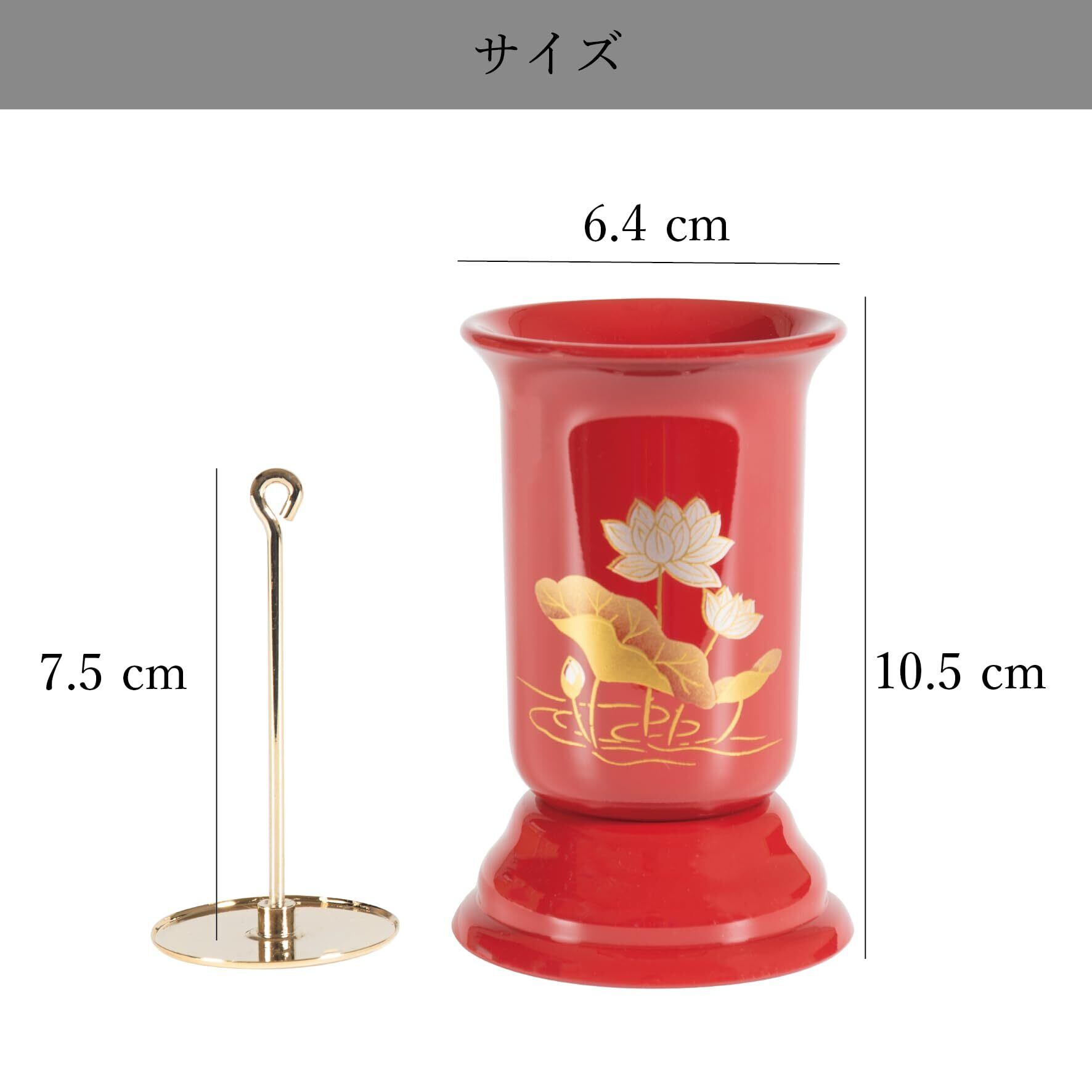 直径6.4×10.8cm。一般的なおぶつだんにも、小さなお供えスペースにも置くことができます。