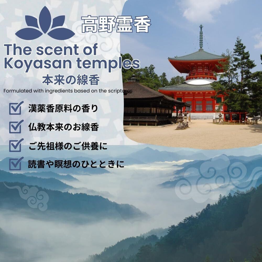【高野山のお線香といえば「銘香 高野霊香」】 多くの寺院で愛用されている高野山ゆかりのお線香。ご自宅で寺院用お線香の本格的な香りを楽しみたい方におすすめの「銘香 高野霊香」です。