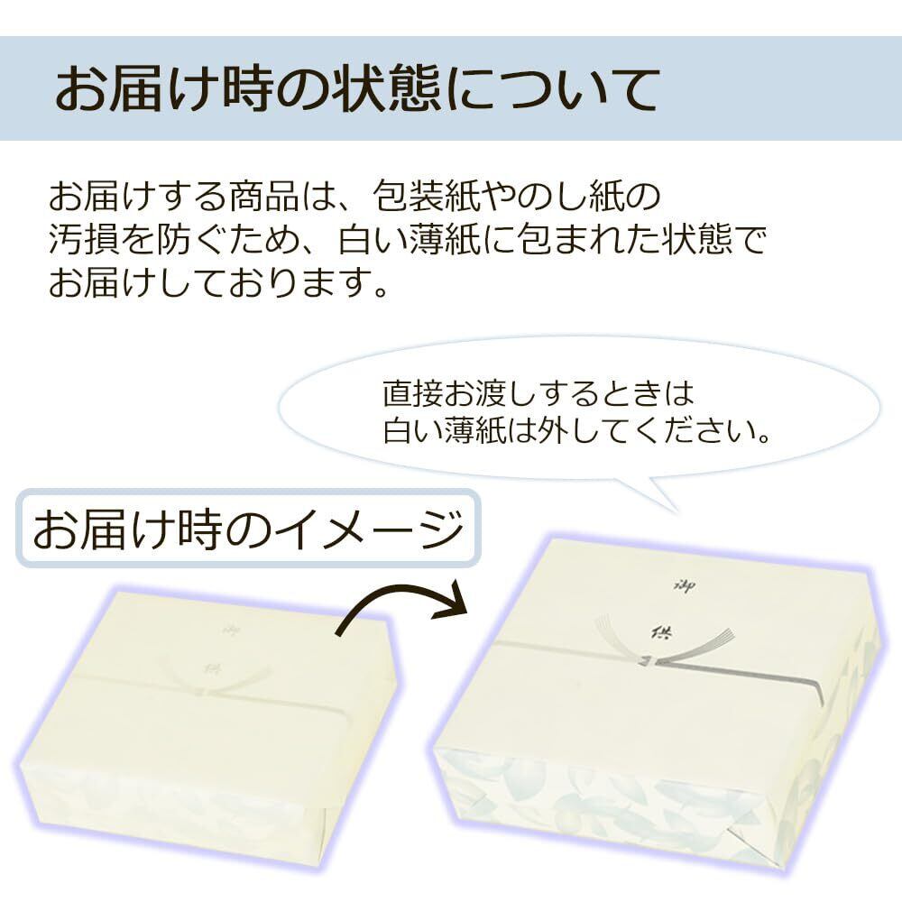 【包装済・御供のしでのご発送】化粧箱に包装をかけ、『御供』と印刷されたのしをお付けしました。御霊前や御仏前などのお悔やみ事全般にお使いいただけます。※名入れ印刷のご対応や、「のし無し」のご要望は承りかねますので、ご注意ください。