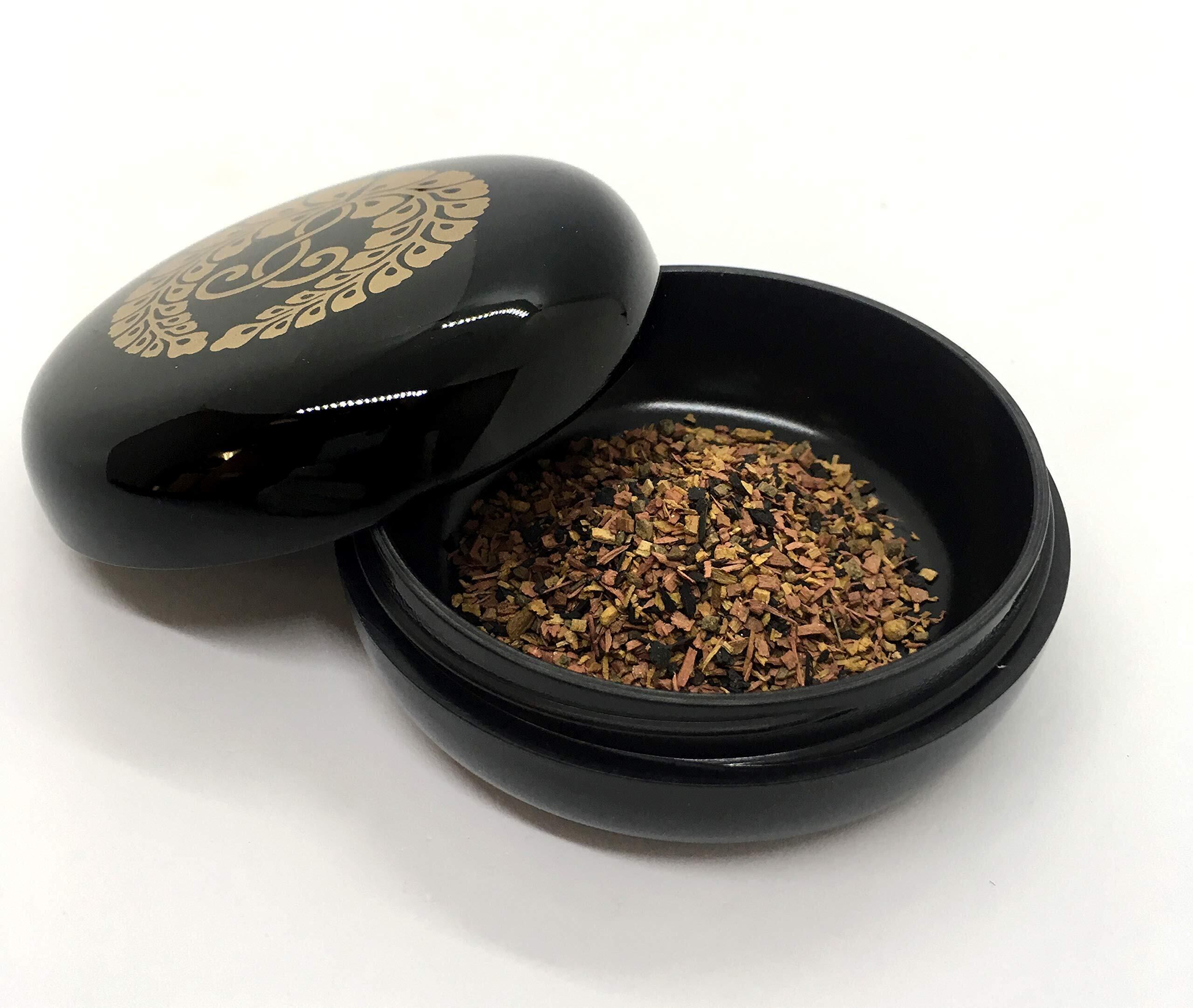 お好きなお香や塗香等をお入れください。ネジ式なので持ち運びも安心、小物入れにも使えます。【紋】下り藤紋(さがりふじもん) 下がり藤紋【宗派】西本願寺 浄土真宗本願寺派【寸法】2.5寸 高さ3.5cm×直径7.5cm【材質】樹脂 黒塗り 国産