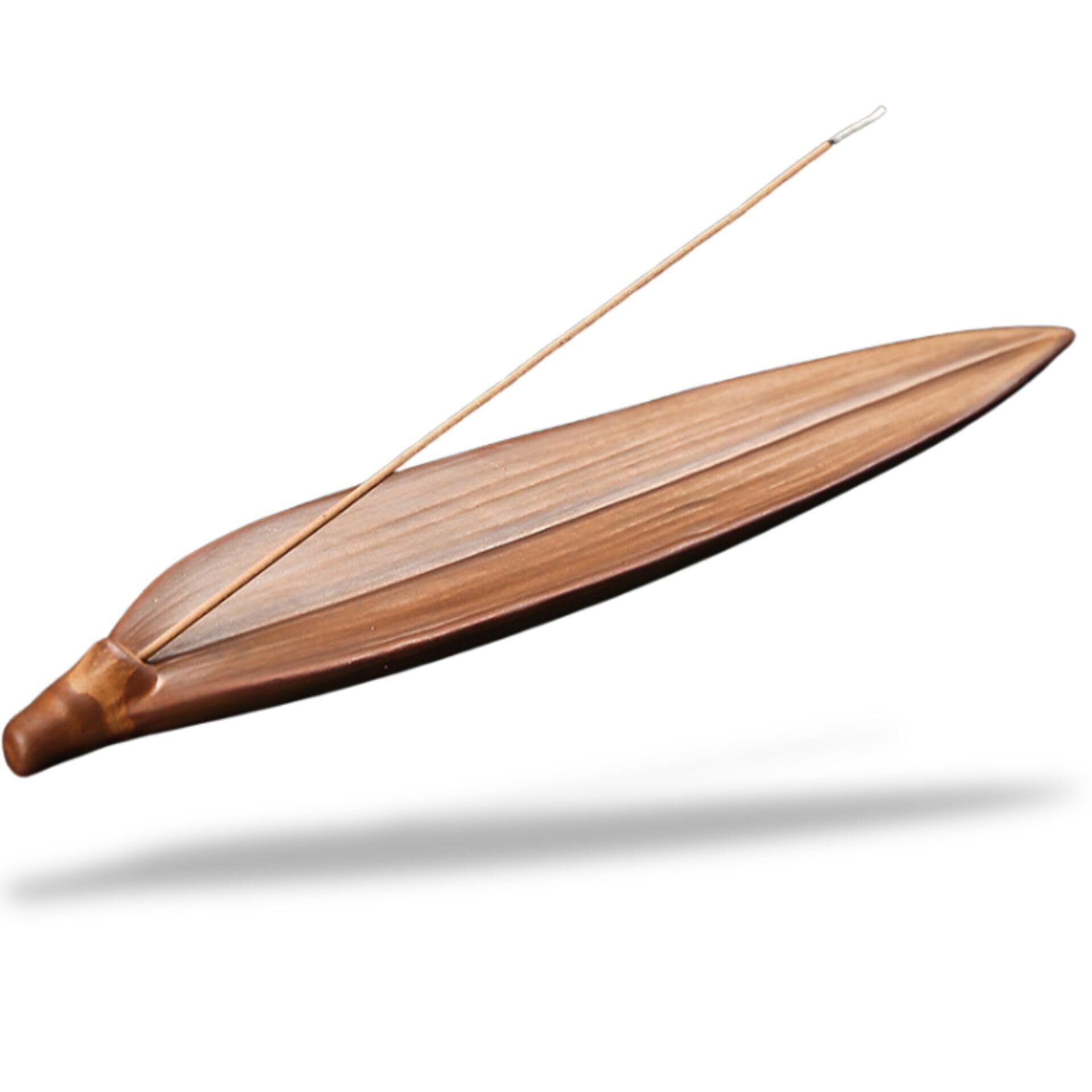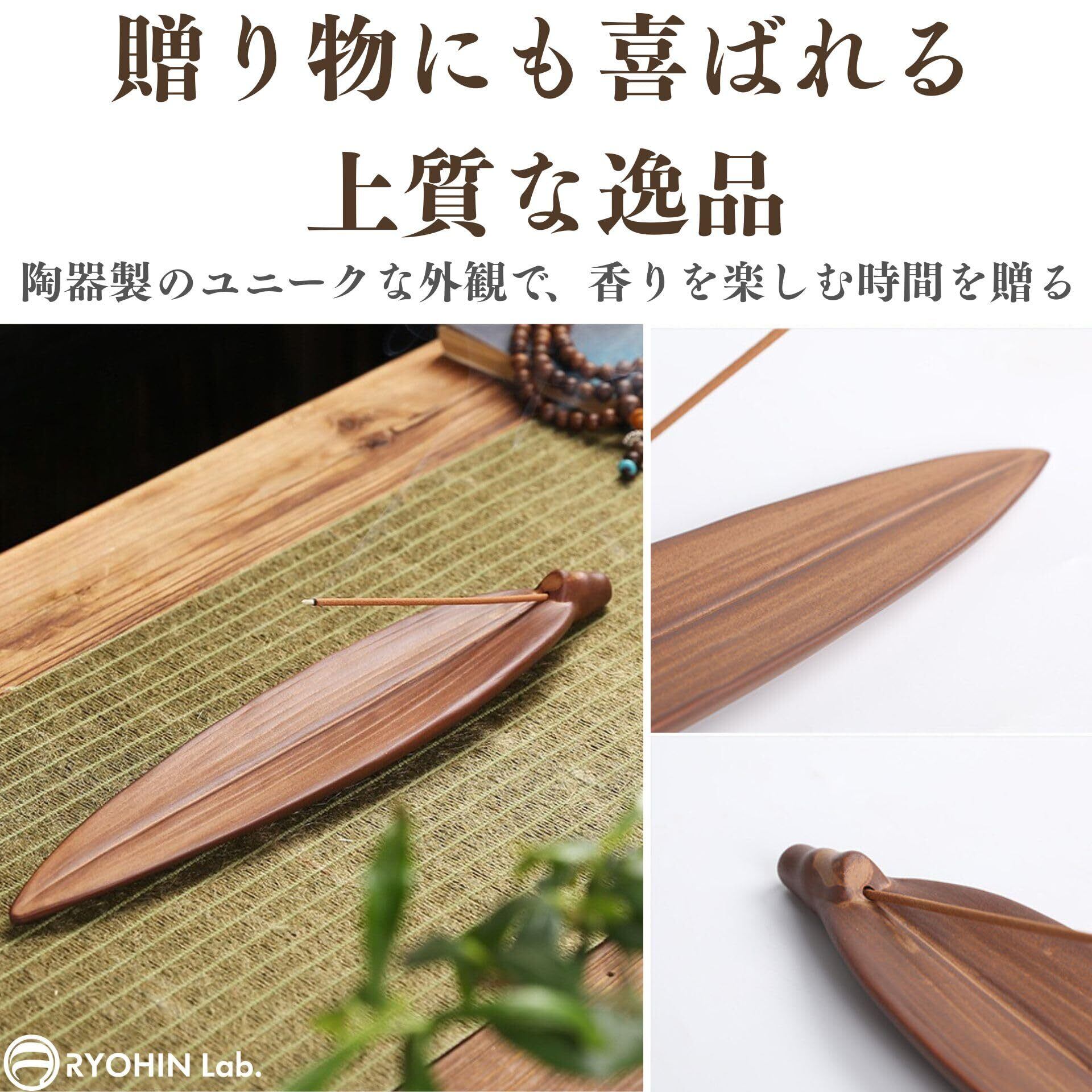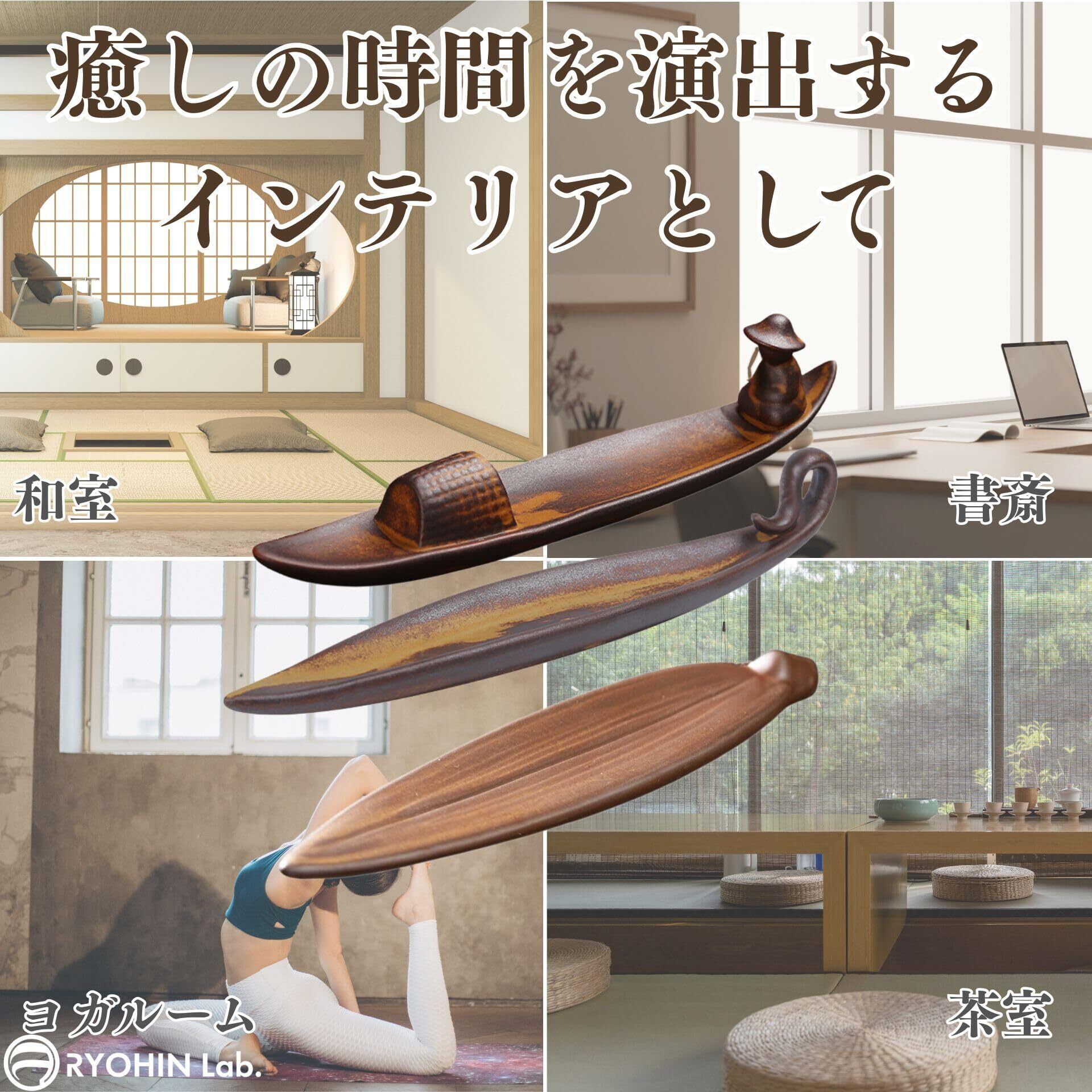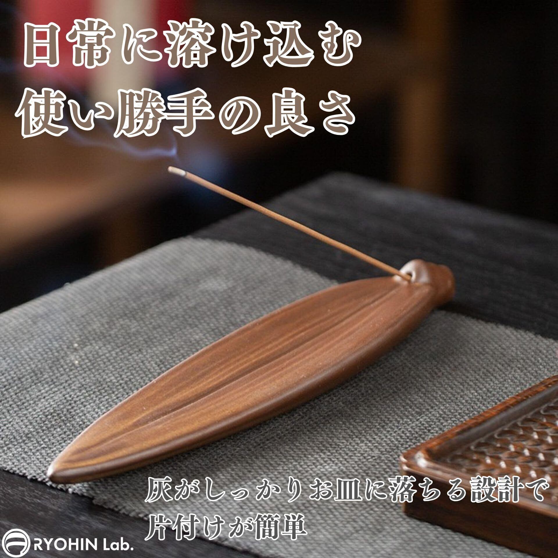 RYOHIN Lab.(良品ラボ) お香立て 灰がこぼれない 横置き 陶器 和風 船 アンティーク アロマ ストレート 線香立て 線香皿 お香置き インセンスホルダー 斜め 皿 和モダン インテリア雑貨 (竹の葉)