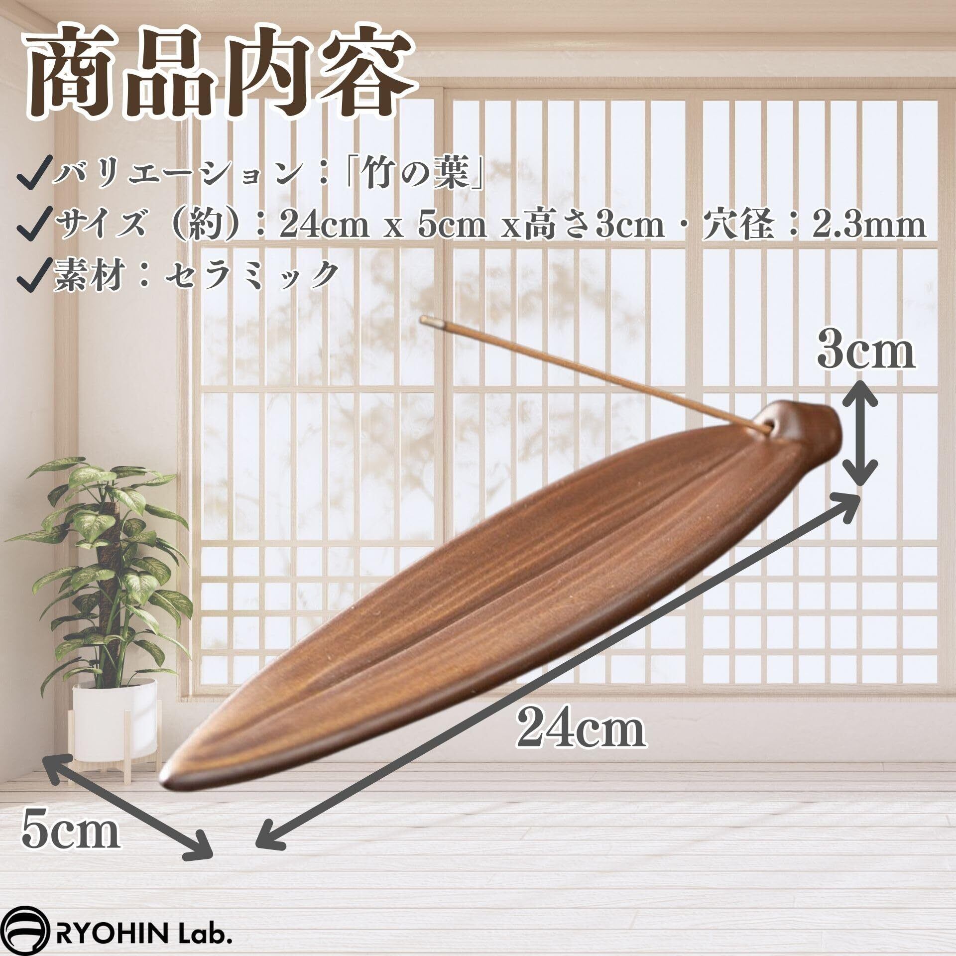 【商品内容】お香立て1セット、バリエーション:「釣り人」・「竹の葉」・「秋の一葉」、サイズ(約):25.6cm x 4.5cm x高さ6cm・穴径:2.3mm、素材:セラミック
