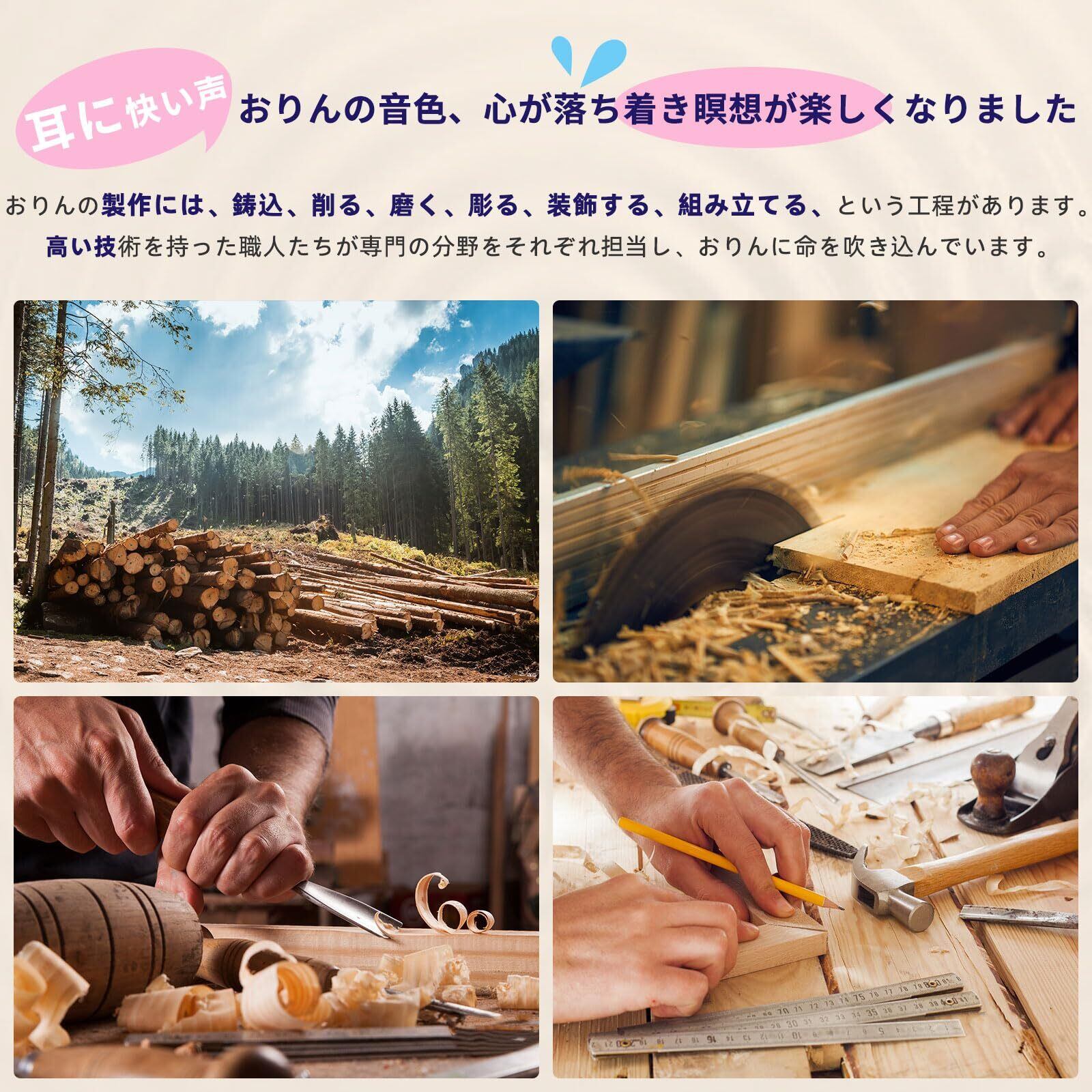 【おりんの意味】「おりん」が響かせる音は、空間を清めて邪気を払うとされています。祈りを「おりん」の音に乗せて、極楽浄土に届けるともいわれます。不安な気持ちになった時や、リラックスしたい時におりんの音を鳴らすと、心地よい清らかな音で心を癒やしてくれます。