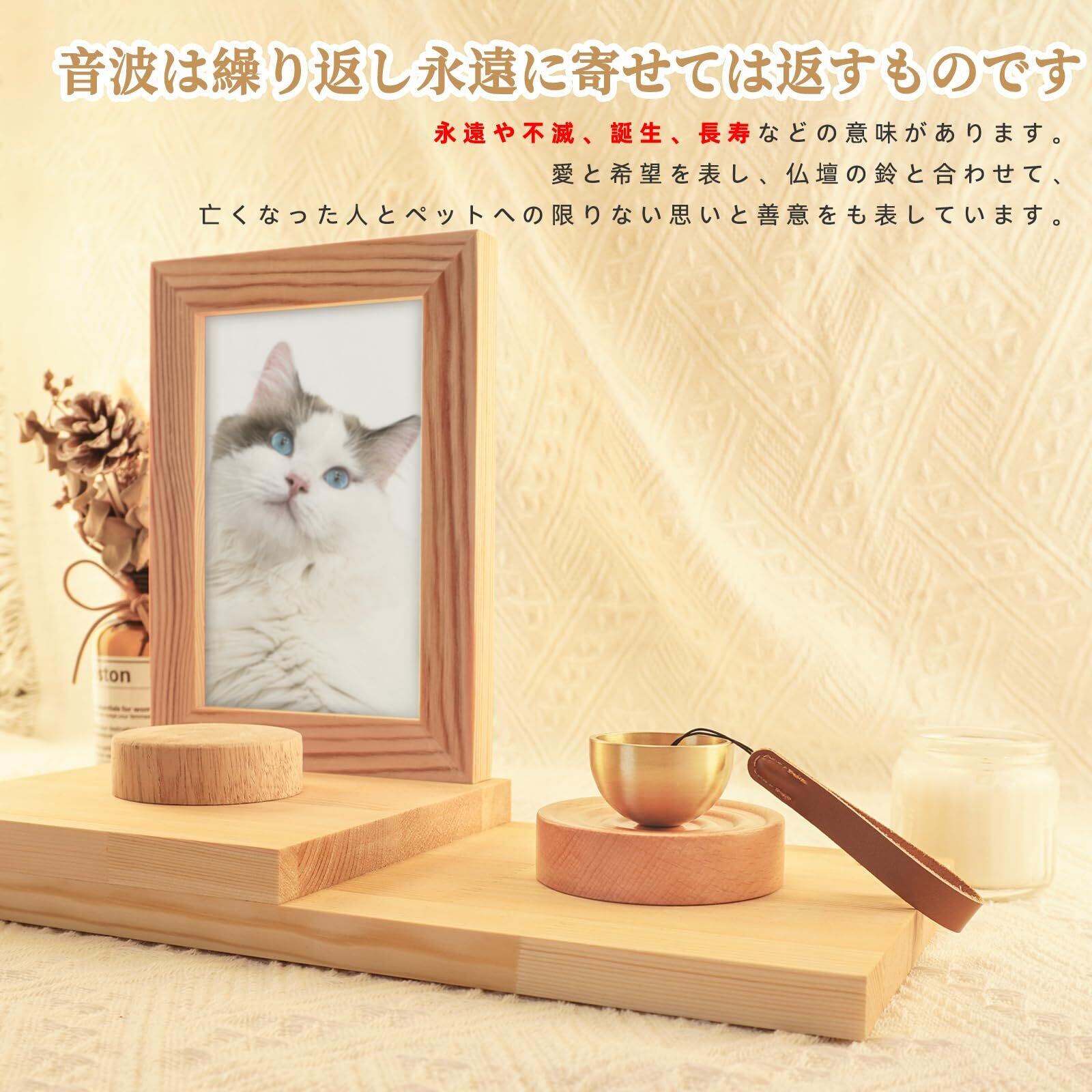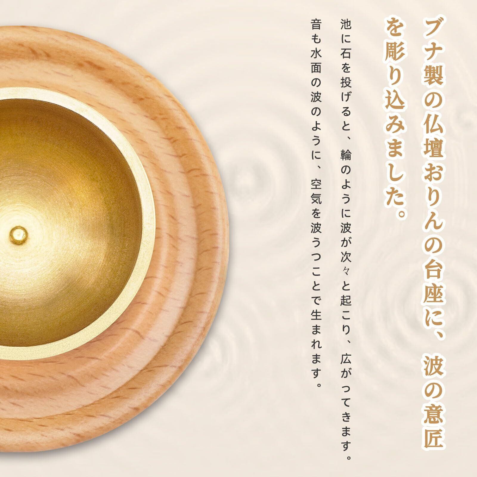 【真鍮とブナの組み合わせ】ブナ製の仏壇おりんの台座に、波の意匠を彫り込みました。波は繰り返し永遠に寄せては返すものです。 永遠や不滅、誕生、長寿などの意味があります。※大切なご家族の一員であるペットのご供養にも、ぜひお使いください。