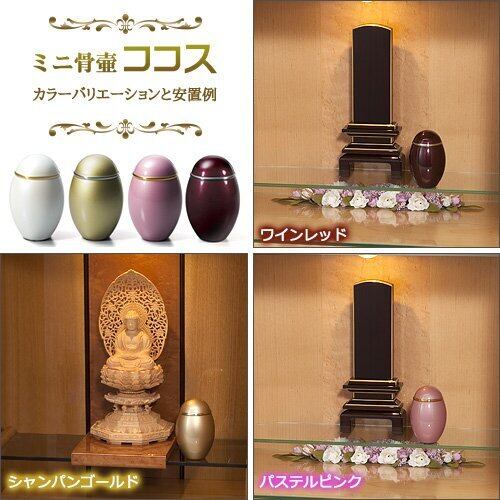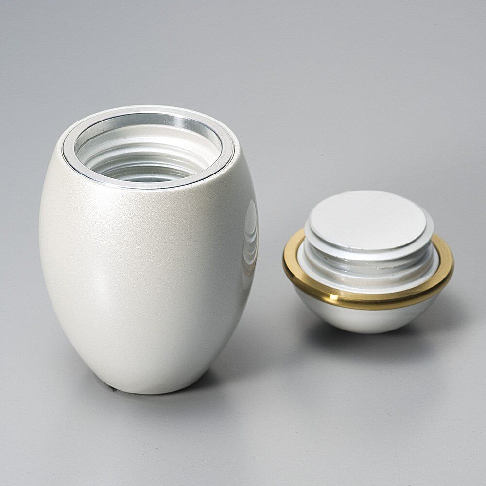 仏壇にもさりげなく置けるかわいいミニ骨壷です。アルミ製なので、倒れて壊れる心配がありません。蓋もネジ式で安心です。掌に丁度納まるコンパクトサイズなので、ご安置する場所を選びません。