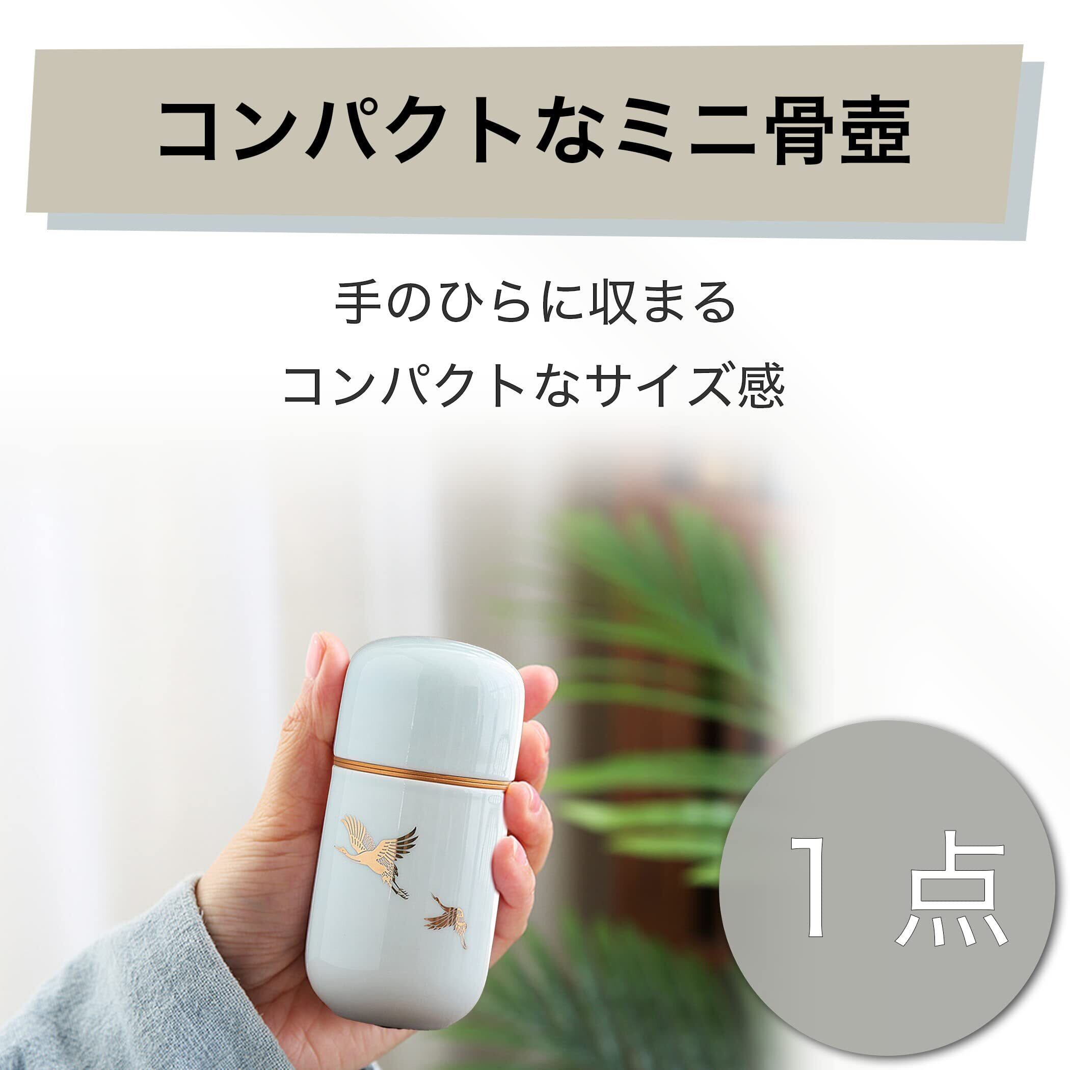 小さめのコンパクトなミニ骨壺:セラミック素材を採用した、コンパクトで丈夫なミニ骨壺です。手のひらに収まるコンパクトなサイズ感の骨壺で、遺骨や遺毛などを入れて、大切な方を身近に感じながら手元供養することができます。遺骨の一部を残して手元で供養したい方におすすめの商品です。