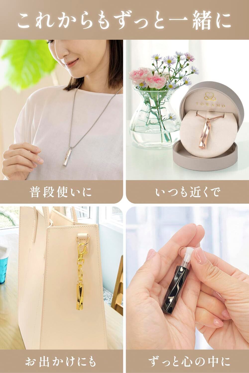 【シンプルでスタイリッシュなデザイン】 「大切な存在を、いつも近くに感じられる」をコンセプトとした、スパイラルのデザインは「永遠のつながり」を表しています。 「まだ離れがたい、これからもずっと一緒にいたい」そんなみなさまの想いを叶えるために、このペンダントをお作りいたしました。 シンプルでスタイリッシュなデザインは「遺骨ペンダント」であることを気付かれることなく、いつもの日常にさりげなくご使用できます。