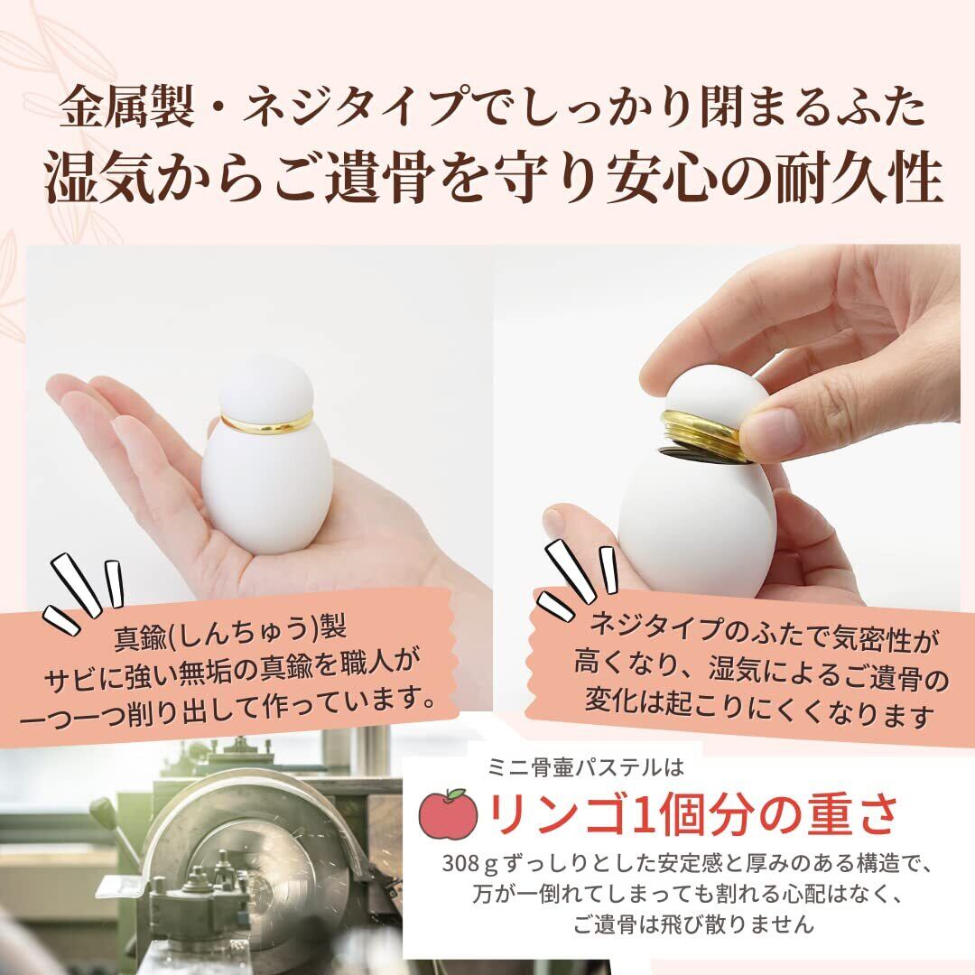 【新春セール】ミニ骨壷 日本製 真鍮製 人間用 パステルデザイン 手元供養 分骨用 コンパクト 携帯可能 T402 ホワイト ネジタイプ 納骨袋付き 携帯できる 持ち運べる