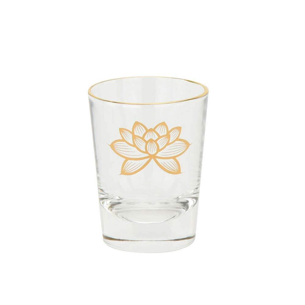 仏さまへお水、お茶をお供えする際に使用するガラス製のコップです。金の蓮が描かれた伝統的なデザインです。