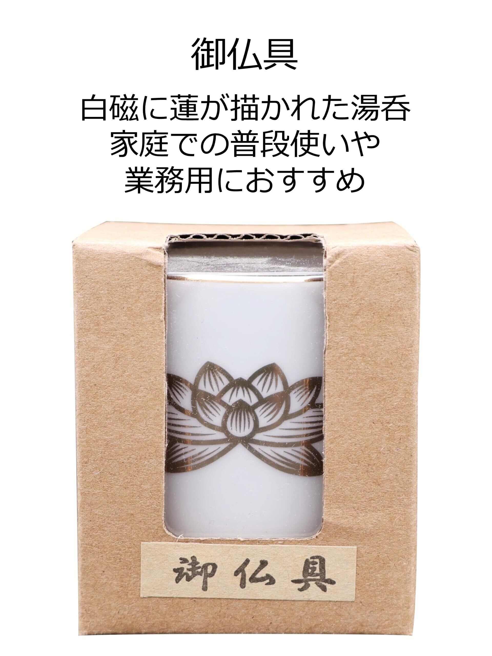 ●白上金に蓮が描かれた仏前用湯呑です●仏前のお供えにぴったり●家庭での普段使いや業務用にもおすすめです