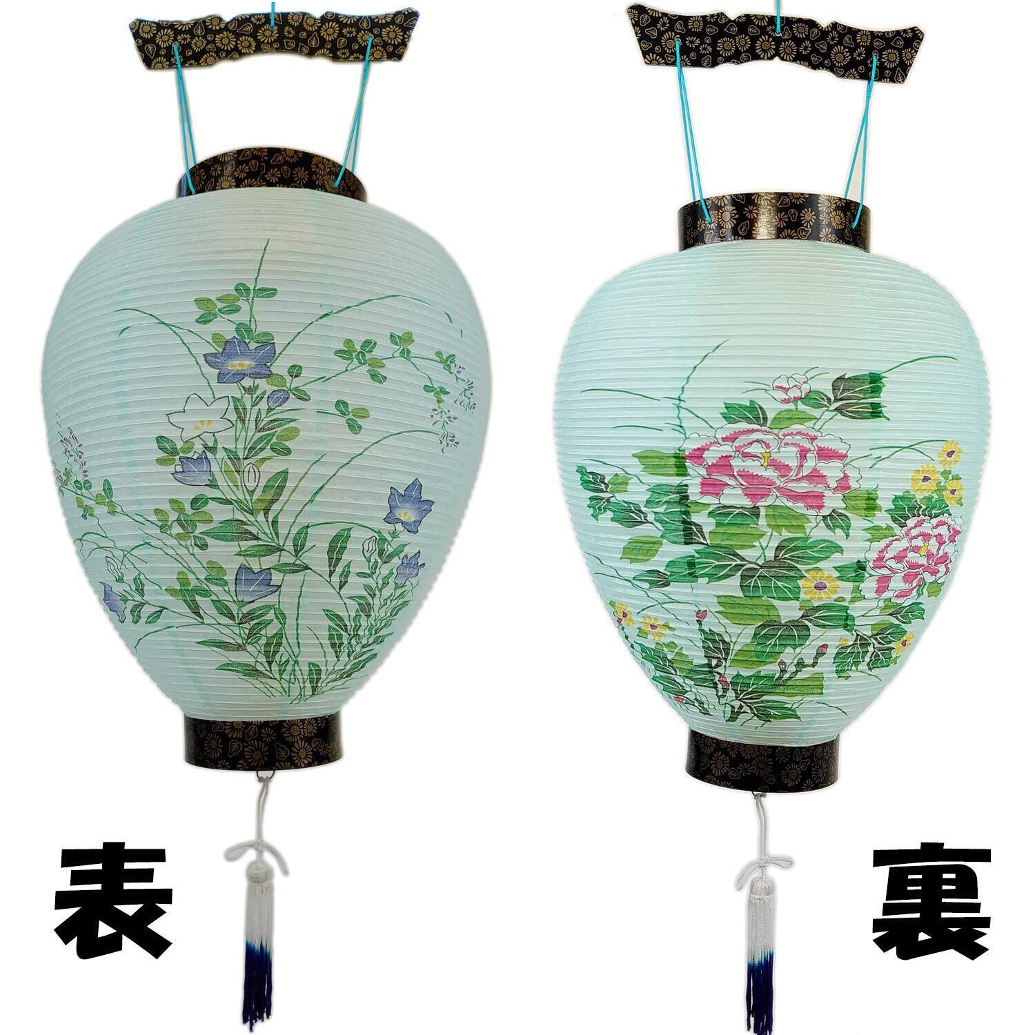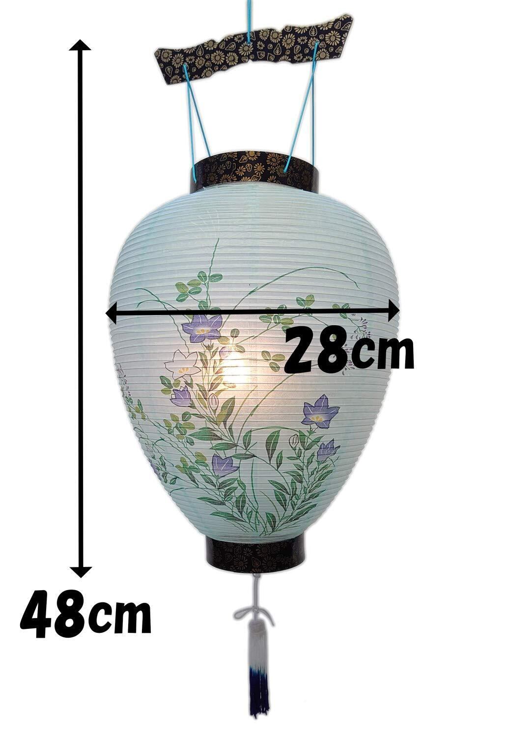 盆提灯 盆ちょうちん お盆提灯 御所提灯 LEDローソク 電池灯付き コードレス 高さ48cm×火袋径28cm 紙蒔絵模様 黒 和紙張 吊り提灯